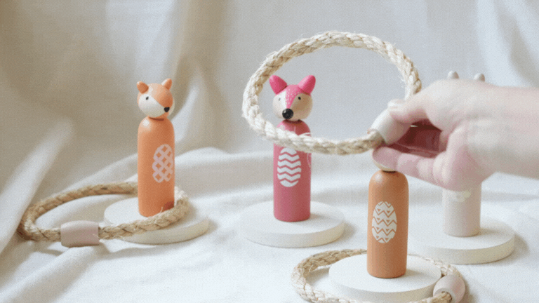 ✨ 套圈圈:將可愛動物瓶裝上底座,將麻繩投向每一個動物