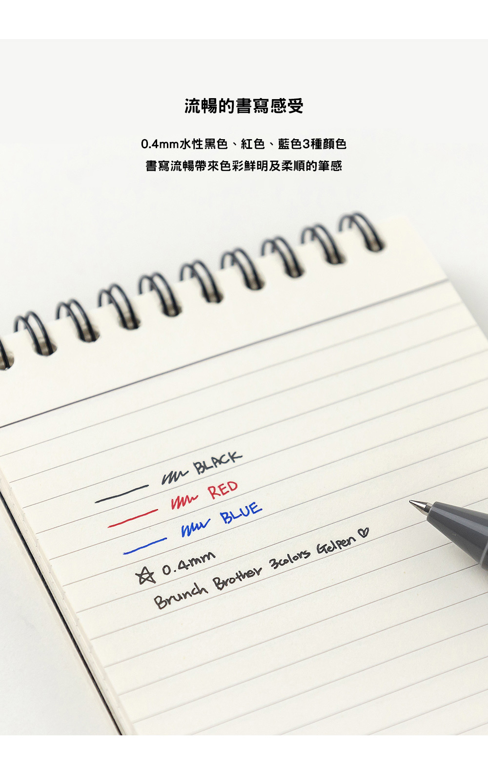書寫流暢帶來色彩鮮明及柔順的筆感,因為是3色筆攜帶方便