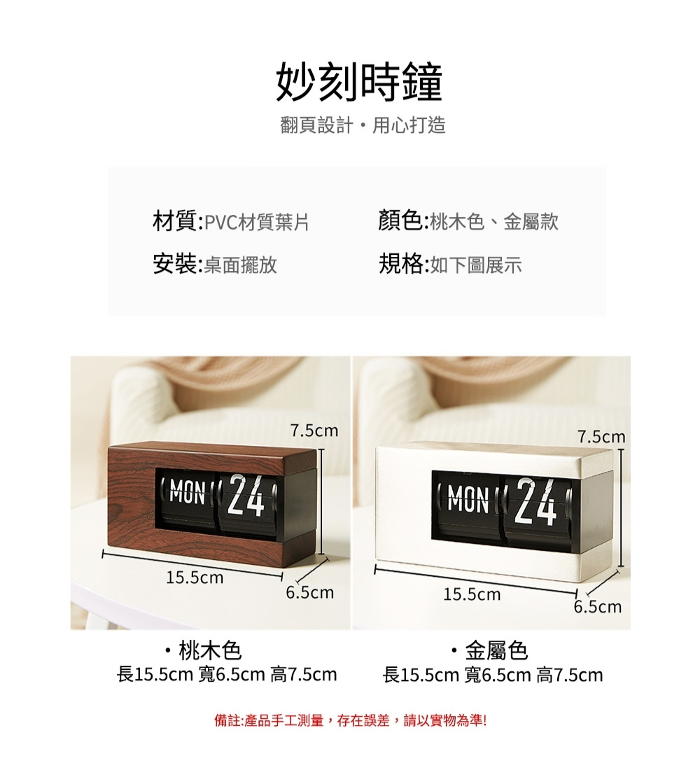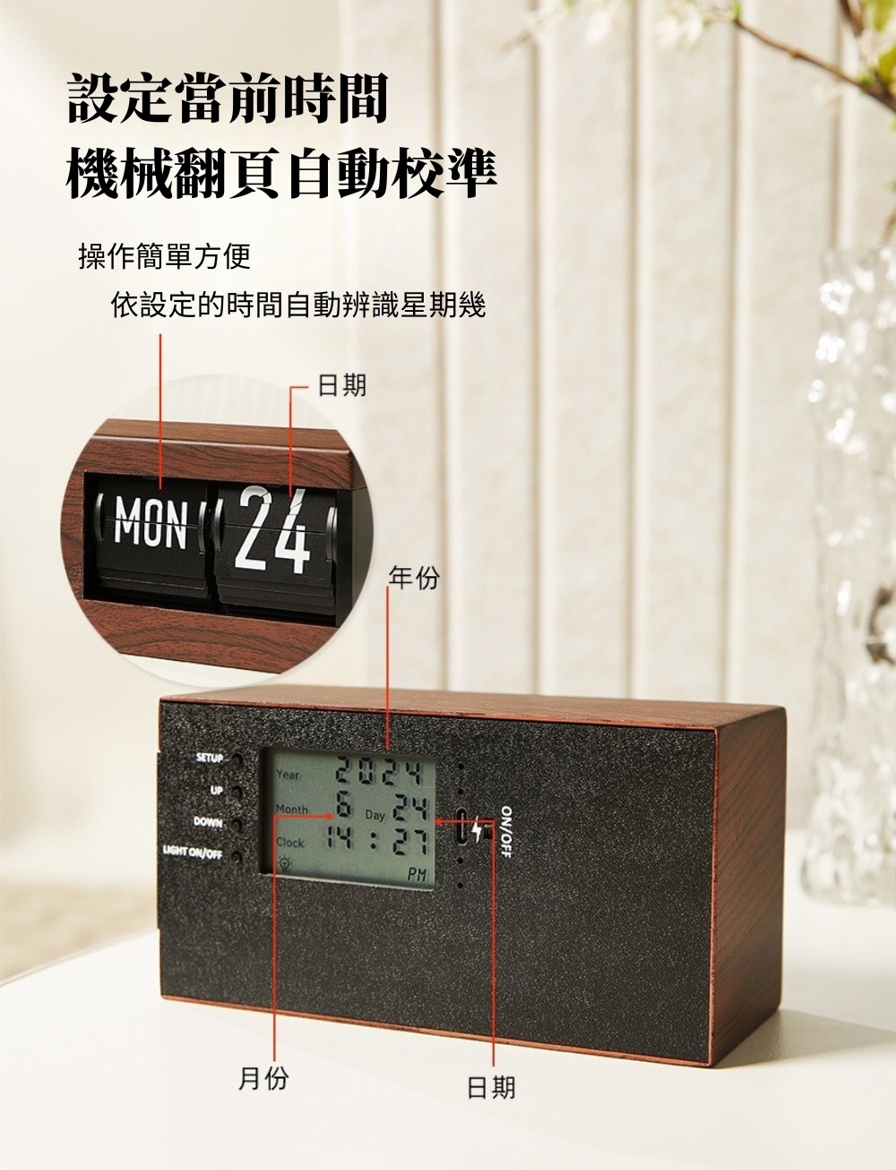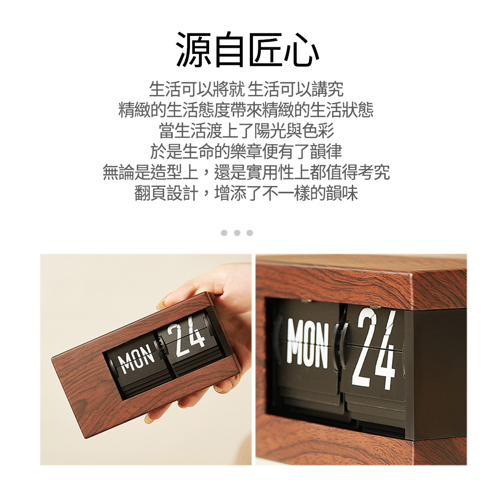 【歐式質感木紋日曆/星期機械翻頁鐘】