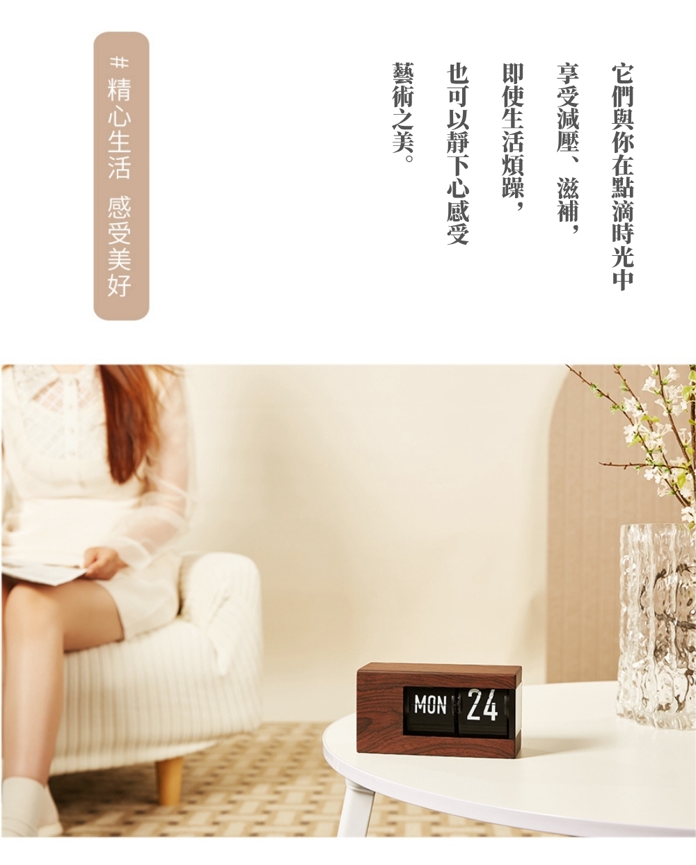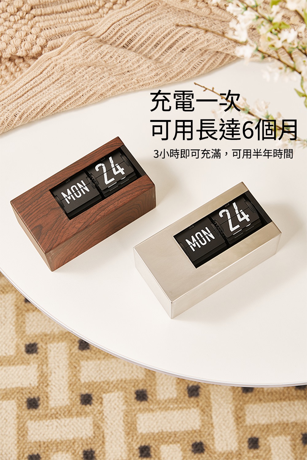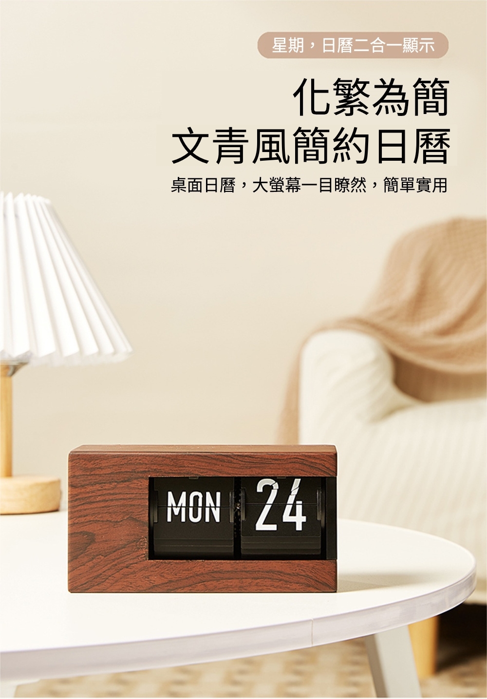 【歐式質感木紋日曆/星期機械翻頁鐘】