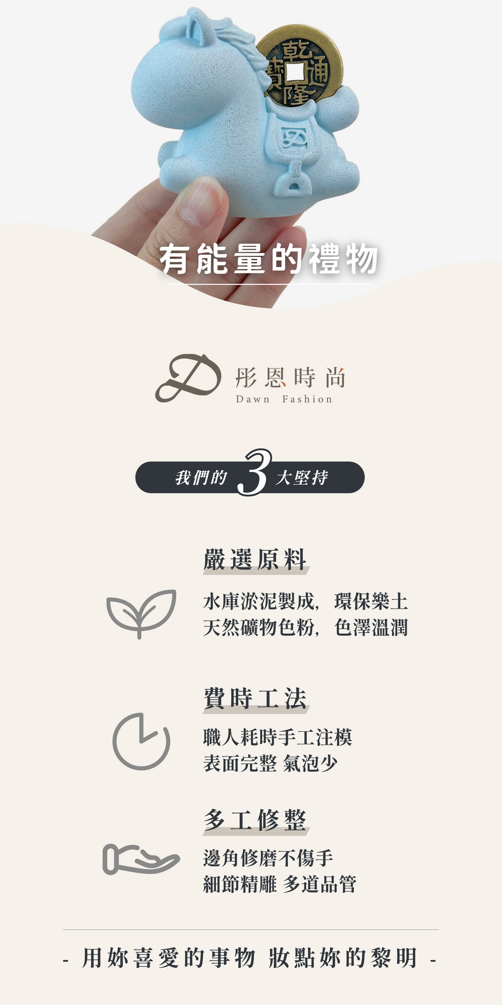 溫柔的守護:水泥材質雖然堅固,但仍需您的溫柔對待。請將『馬上有錢』安放在平穩、安全的位置,避免高處墜落或強力碰撞,讓牠能長久安穩地陪伴您。