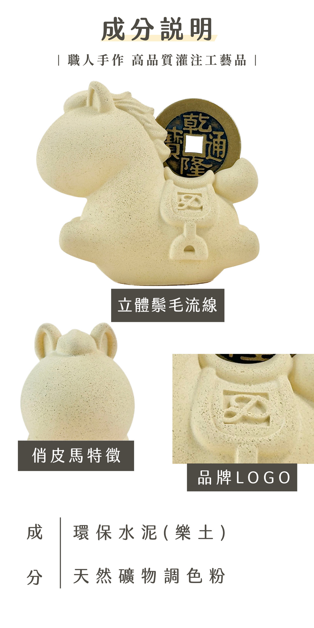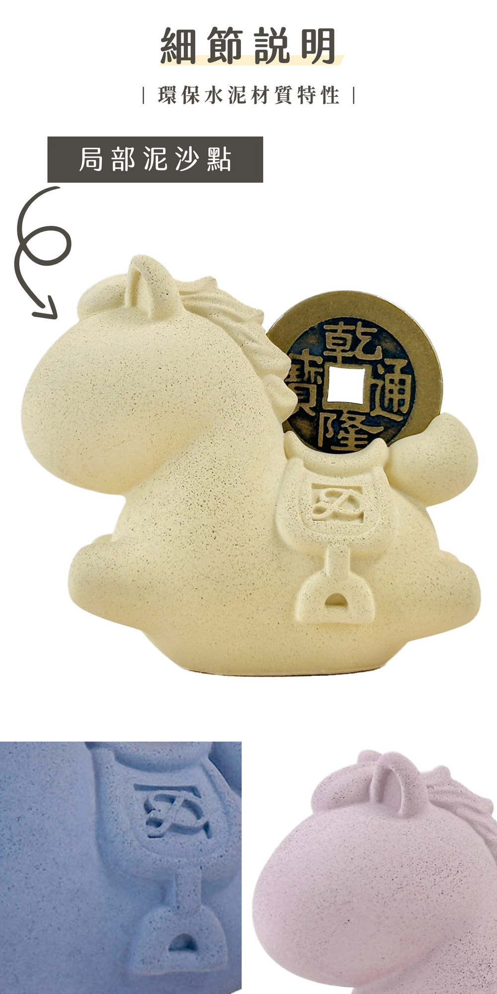 手作的獨特印記:在手工灌注的過程中,表面可能會產生細微的氣泡或獨特的紋理,這是水泥材質在凝固時自然形成的呼吸孔隙,也是每隻『馬上有錢』獨一無二的樸實之美,並非瑕疵喔。