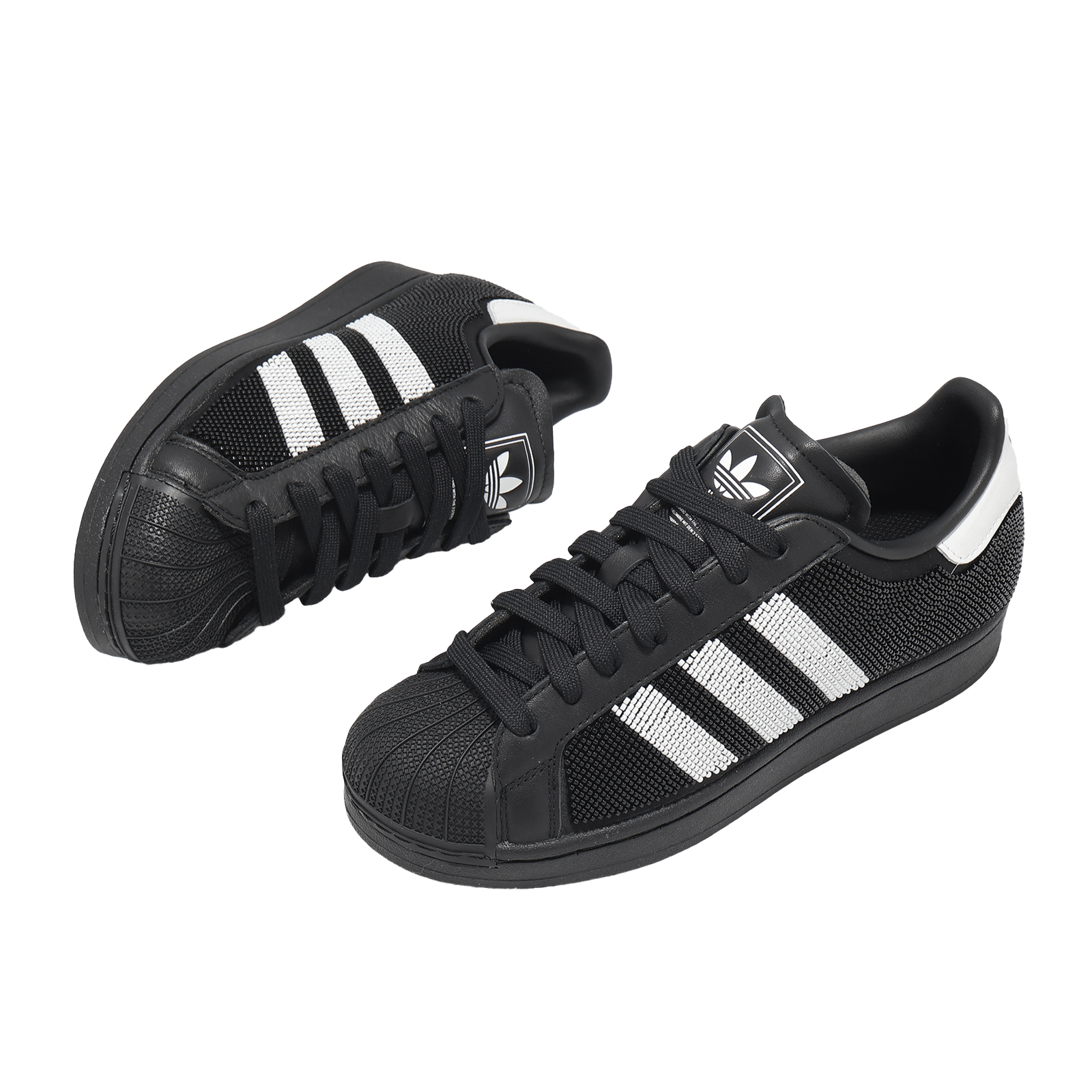 * 鞋面採皮革材質搭配側面串珠設計,搭配貝殼頭與三條紋點綴 LOGO,打造獨特穿搭風格。