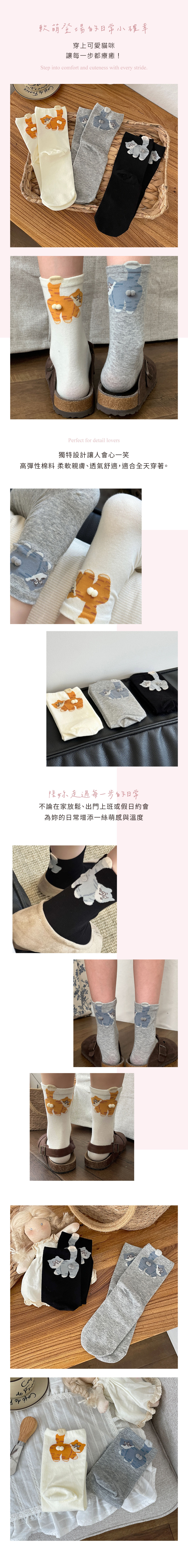 蛋貓棉質中筒襪黑X1米白X1灰X1共3雙