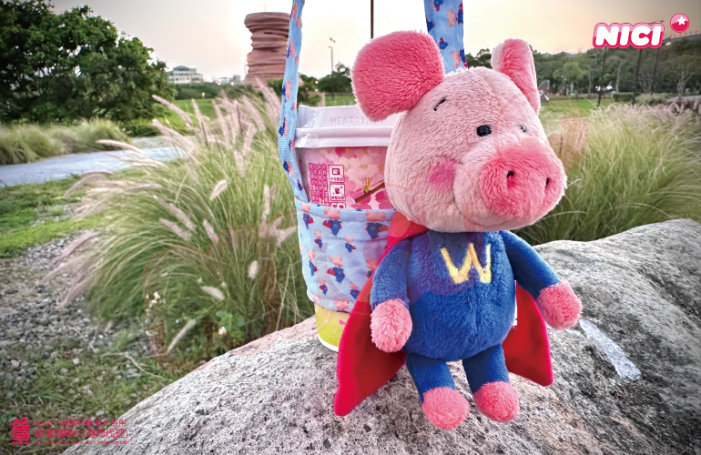 台灣獨家人氣飲料杯套:芒果冰小豬威比全新登場。可掛在背包,買飲料就可化身提袋輕鬆帶著走環保又時尚。另外特別加上活動鉤環,使完收納好杯套後更容易掛上背包。超實用限量單品,千萬別錯過,趕快把他加入飲料套的收藏吧。