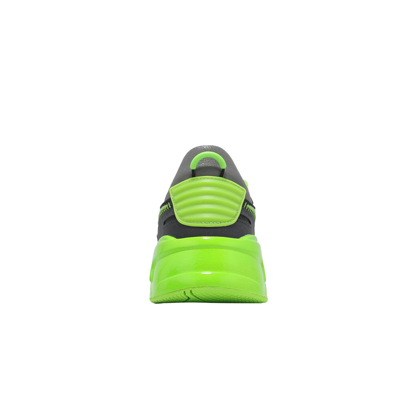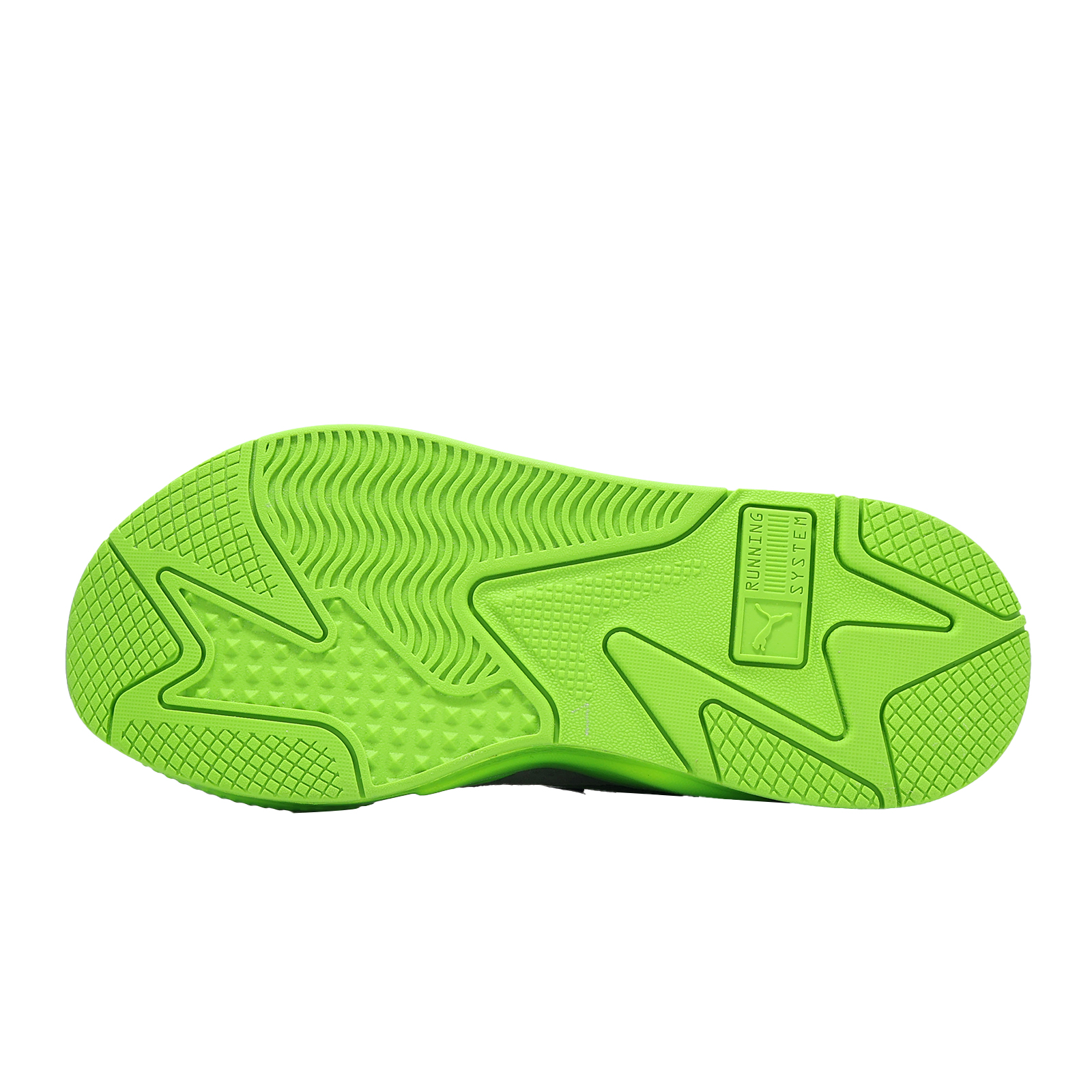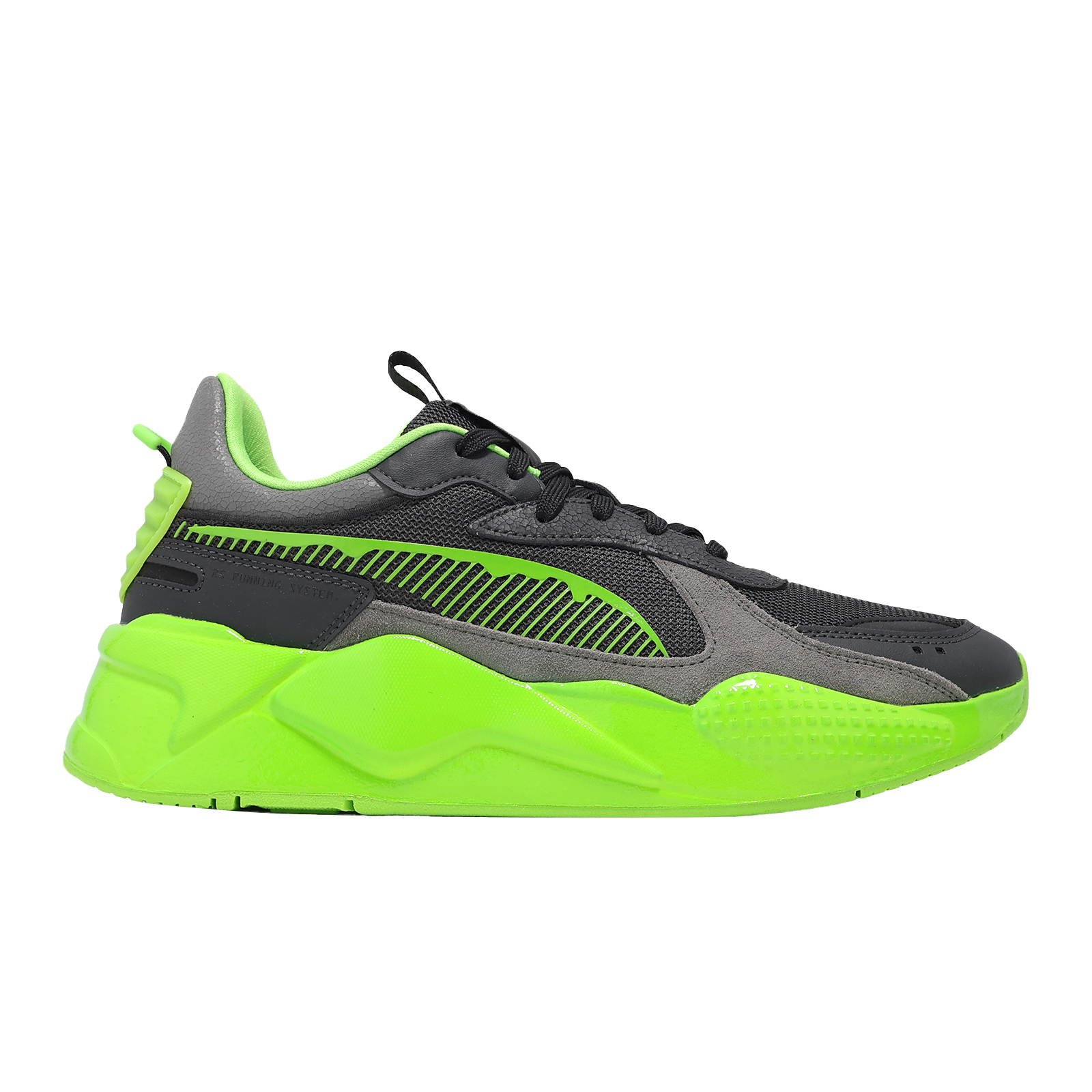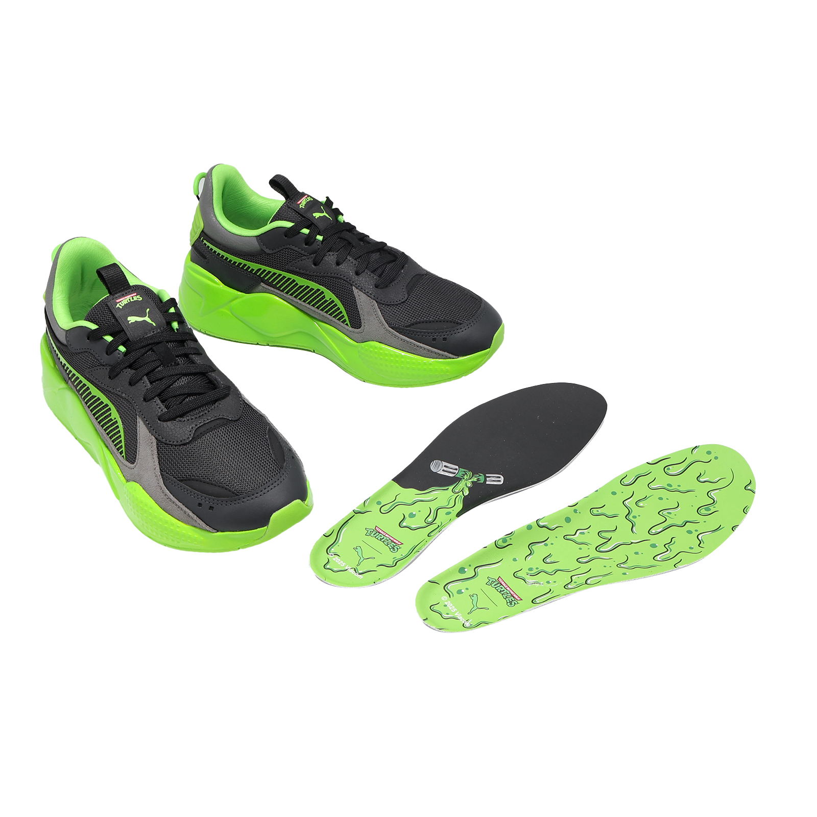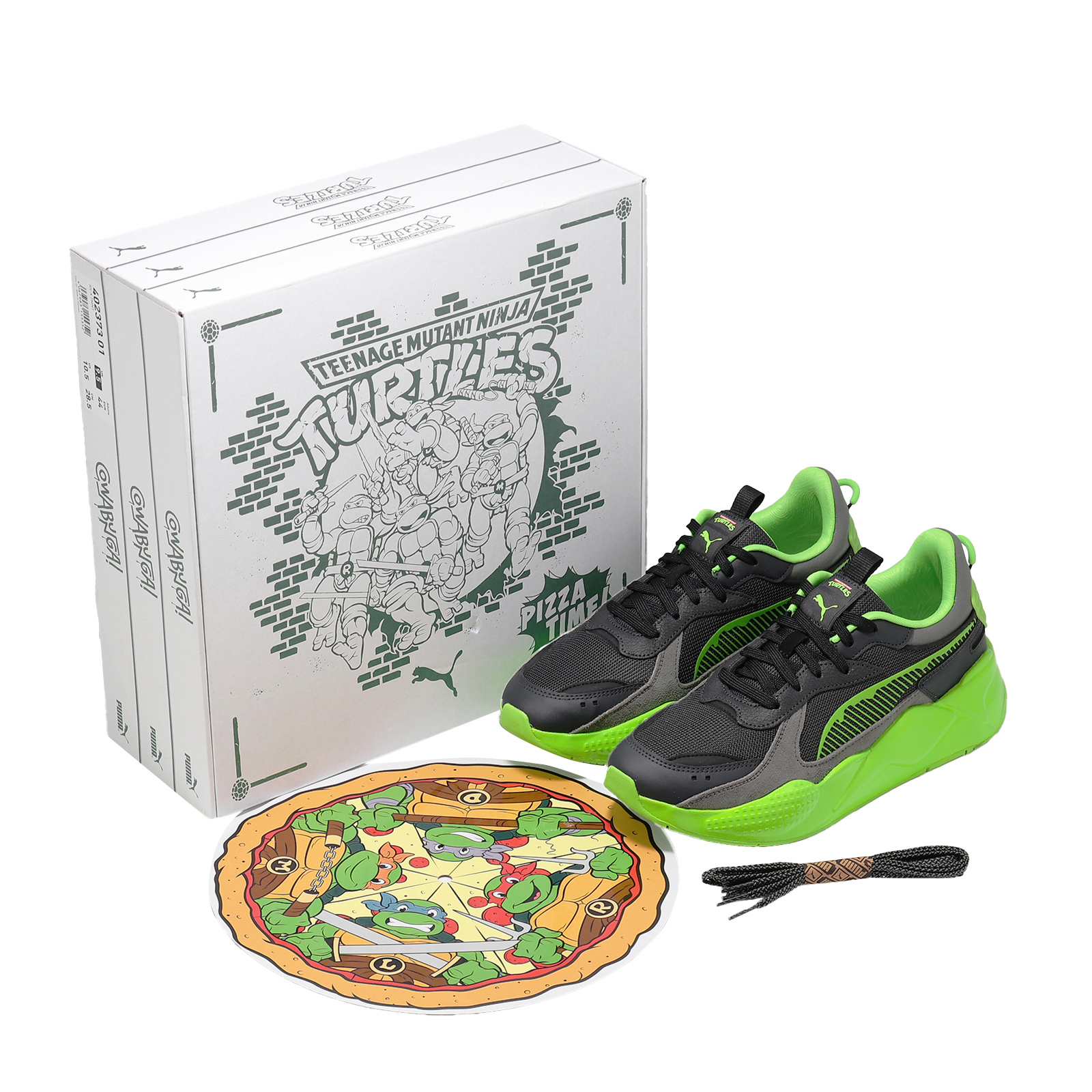 品牌: PUMA型號: 402373-01品名: RS-X TMNT版型: 版型正常*與經典動畫-忍者龜攜手合作,以忍者龜的秘密基地地下水道為靈感來源,以黑色搭配螢光綠設計鞋身,營造下水道的氛圍感。