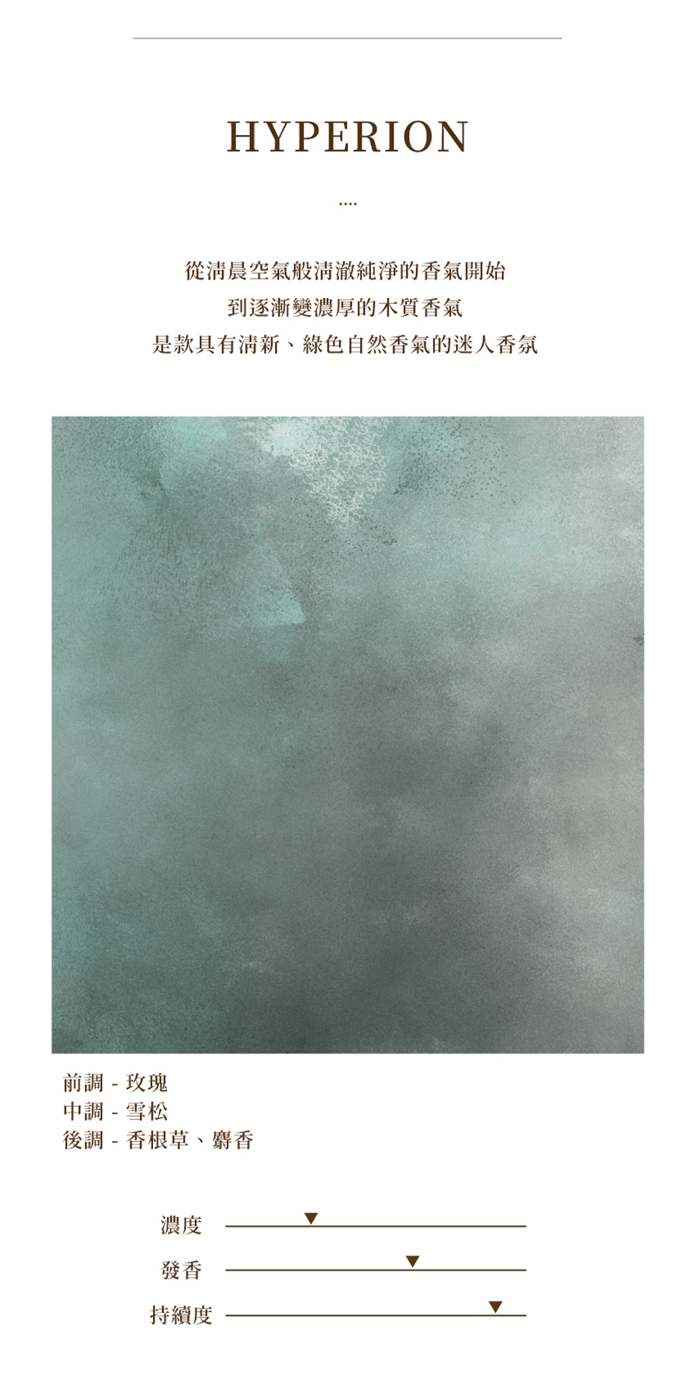 從清晨空氣般清澈純淨的香氣開始,到逐漸變濃厚的木質香氣,