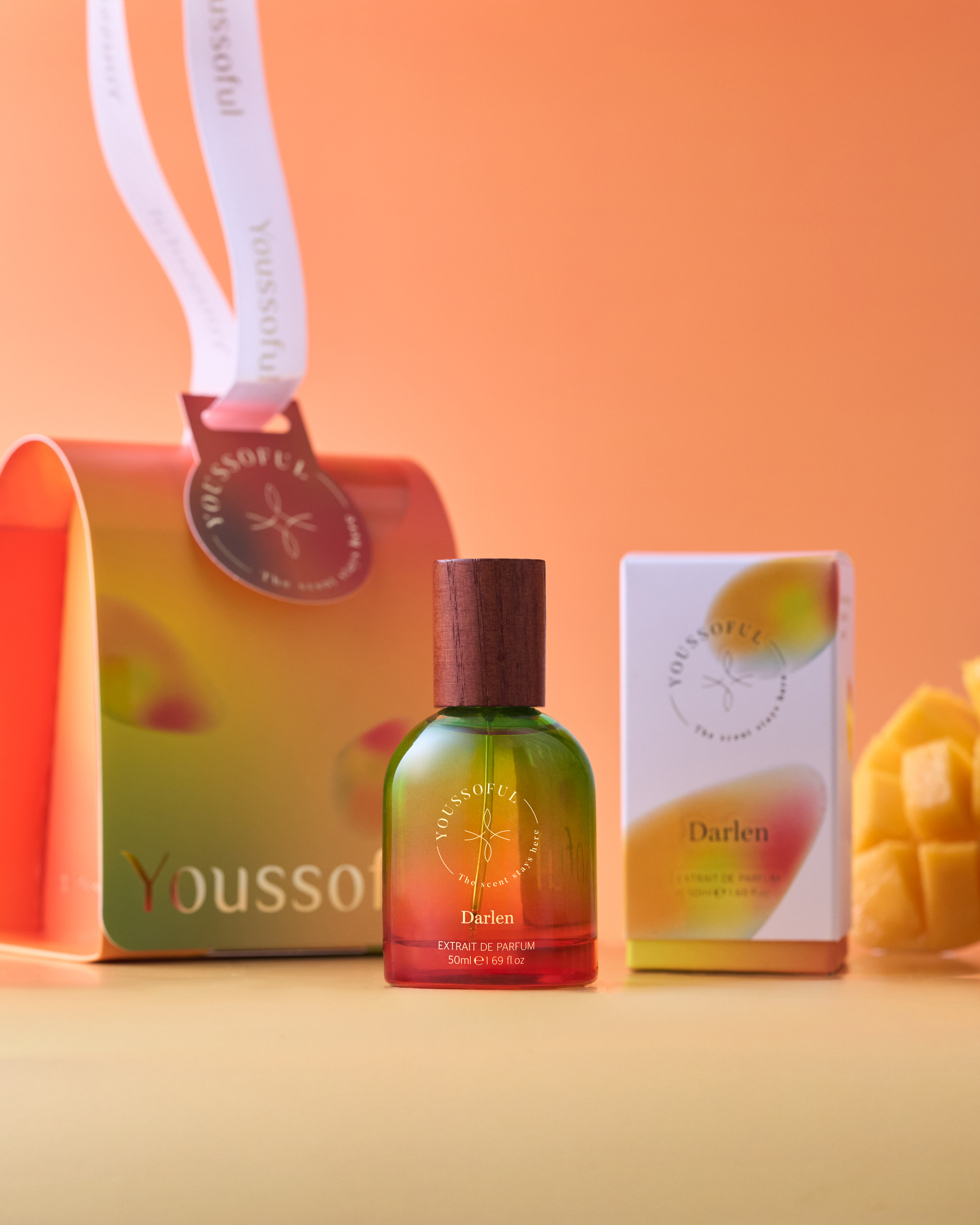 Darlen 達倫 是什麼味道 Darlen,如其名般,是一位充滿朝氣的可愛女孩。 清甜的荔枝與紅西柚交織出明亮的果香,瞬間喚醒感官,如陽光灑落的夏日早晨。 李子與梨子的細膩香氣緩緩綻放,柔和而誘人,猶如一杯新鮮調製的熱帶果香潘趣酒,沁涼又令人著迷。 麝香作為溫柔收尾,為整體香氣增添一抹輕盈與純粹,留下淡淡餘韻,彷彿那位經過你身邊時微笑回眸的女孩。單香調 : 荔枝、李子、紅西柚、梨子、麝香Youssoful曾收到眾多客人詢問的擴香瓶香味「Darlen」,為了慶祝成年日,推出限量版香水。為人生中的第一個二十歲加油打氣的成年日特別版。