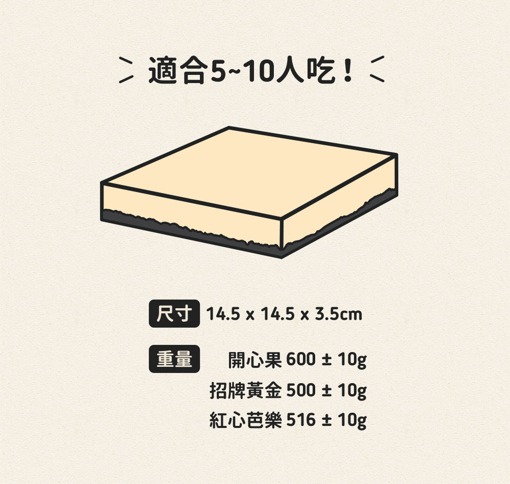 尺寸:600g ± 10g / 14.5 x 14.5 cm (個)