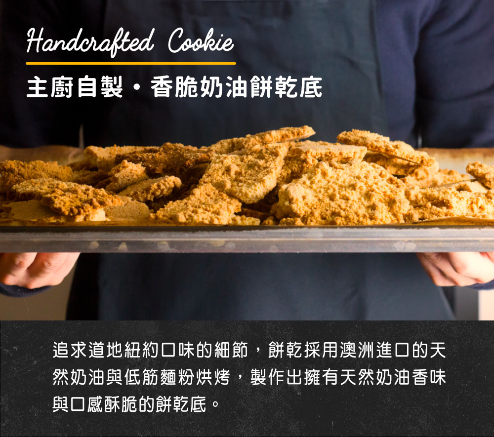 成份:奶油乳酪、自製奶油酥餅(原味:低筋麵粉、無鹽奶油、糖粉)、無鹽奶油、雞蛋、砂糖