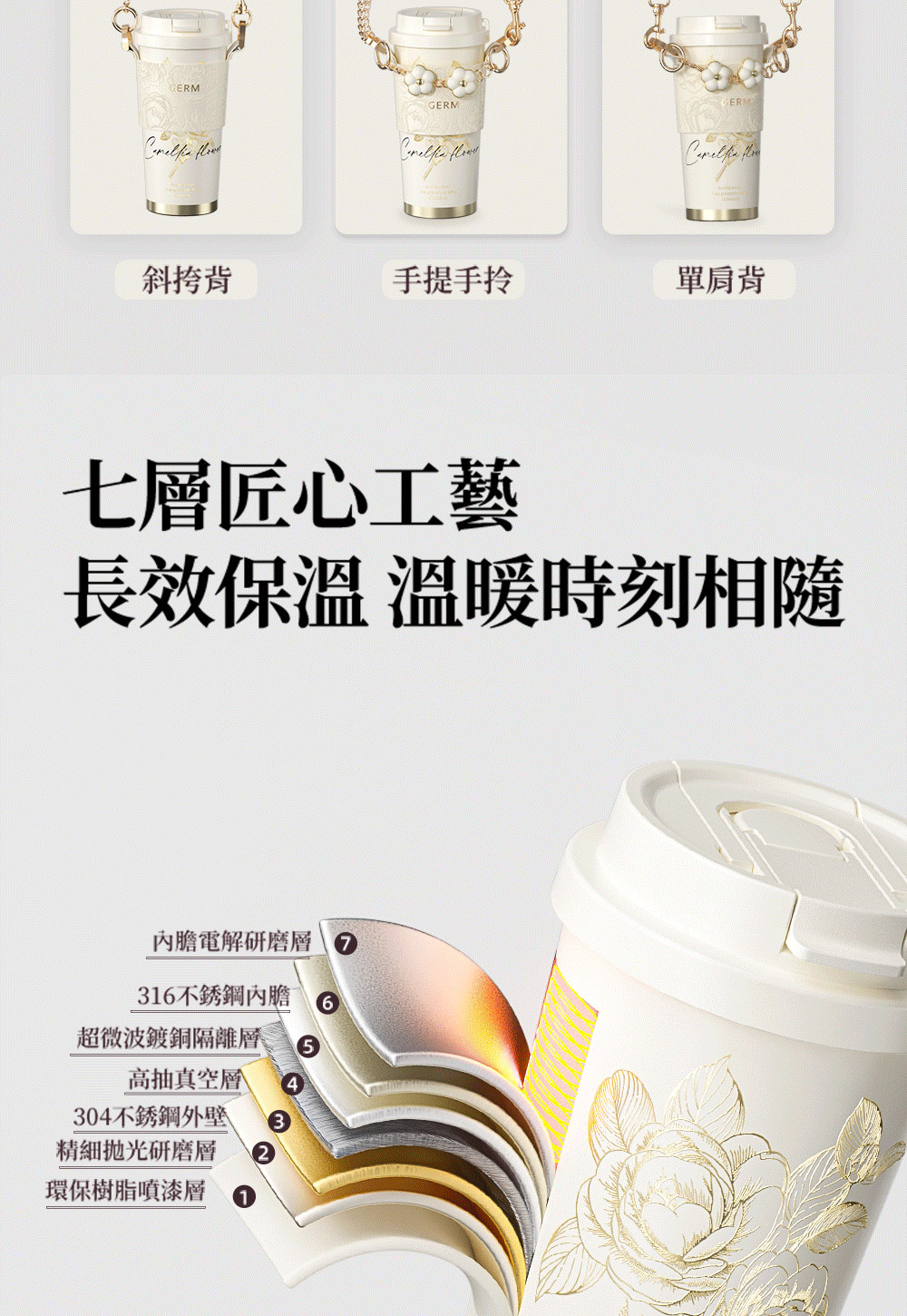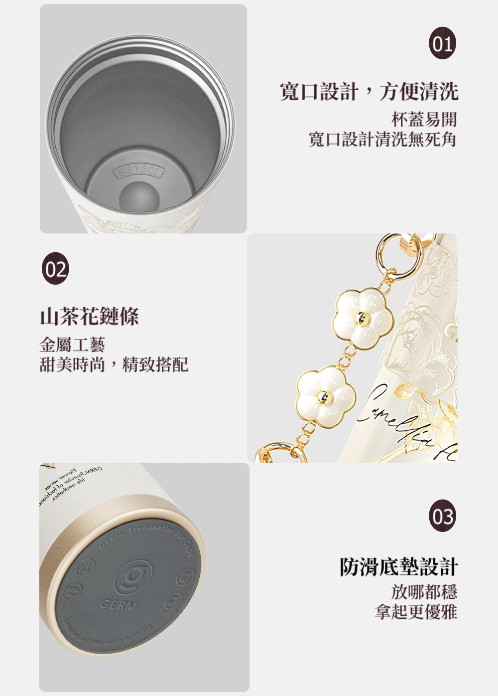 名稱:【GERM格米】山茶花系列閃耀保溫咖啡杯500ml-夜蕾山茶