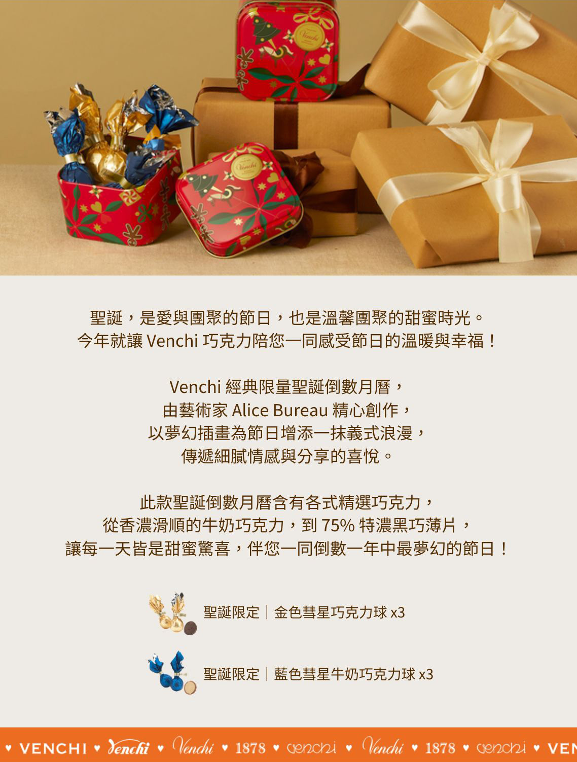 聖誕,是愛與團聚的節日,也是溫馨團聚的甜蜜時光。今年就讓 Venchi 巧克力陪您一同感受節日的溫暖與幸福!
