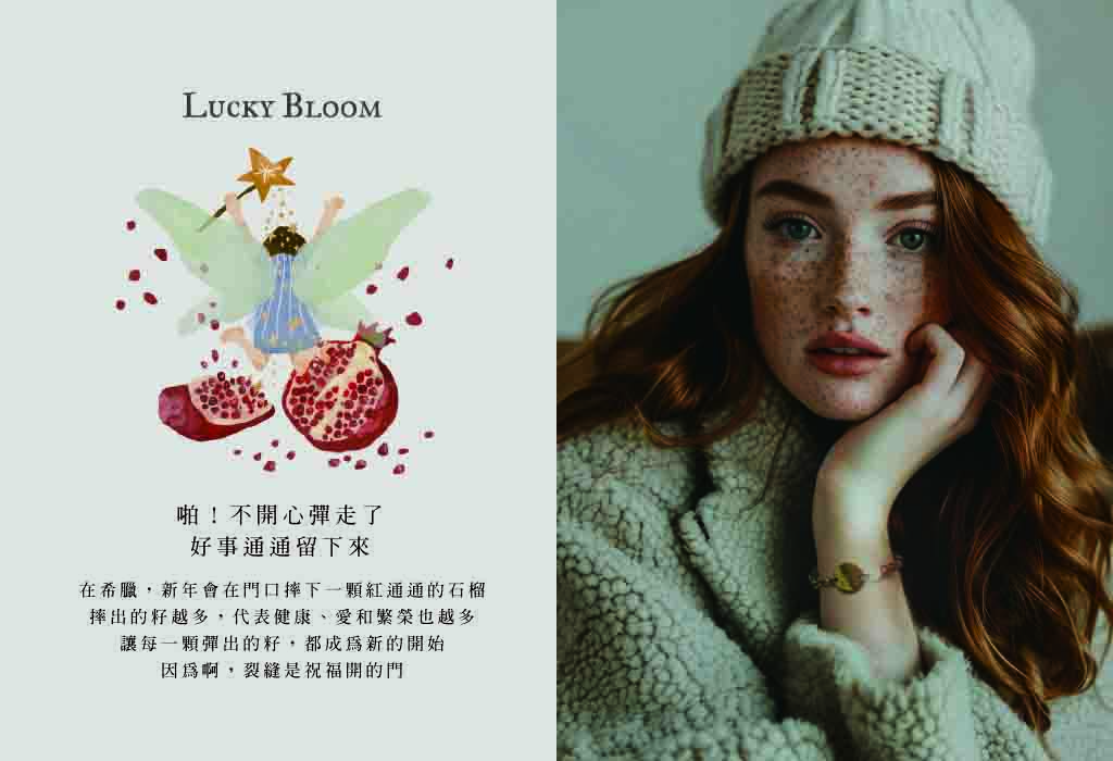 在希臘,迎接新年最特別的儀式,是將一顆紅通通的石榴「啪!」地摔在門口,籽越多、彈得越遠,祝福就越多。愛、健康、繁榮與好運,會隨著籽一起進門。摔碎的,不只是過去一年的疲憊,也是那些你沒說出口的煩悶與委屈。讓這顆「祝福石榴」替你裂開,把卡住的心情都彈出去,讓每一顆飛出的籽,都種下新的開始。因為「裂縫,是祝福偷偷開的門。」
