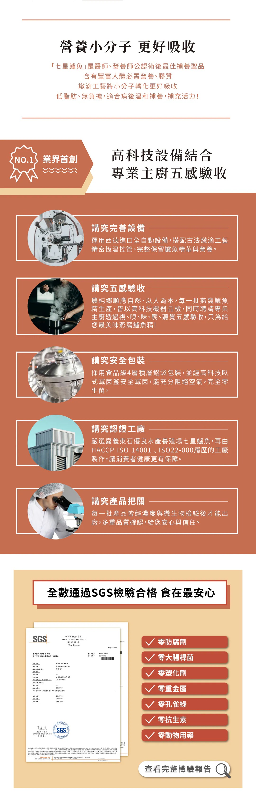 1.商品組合/規格:【農純鄉】燕窩鱸魚精禮盒(50ml)-6入/15入2.商品品名:【農純鄉】燕窩鱸魚精禮盒(50ml)3.內容成分:鱸魚、水、洋蔥、米胚芽萃取物(糊精、米胚芽萃取物)、燕窩萃取物(麥芽糊精、燕窩萃取物)※本產品含有魚類製品,本產品與其他含有花生、堅果類、魚類、甲殼類、蛋、奶、豆、麥的產品於同一生產線,食物過敏者請留意。4.商品重(容)量:50毫升/包5.原產地(國):台灣6.保存期限:常溫 24個月(請放置於陰涼處,避免陽光直射)(實際依商品包裝標示)7.製造廠商或國內負責廠商名稱:吉康食品股份有限公司8.製造廠商或國內負責廠商地址:407台中市西屯區工業31路13號9.製造廠商或國內負責廠商電話:0800-43528810.食品業者登錄字號:B123107476-00001-011.投保產品責任險字號:兆豐產物-0218第13PDL00145號