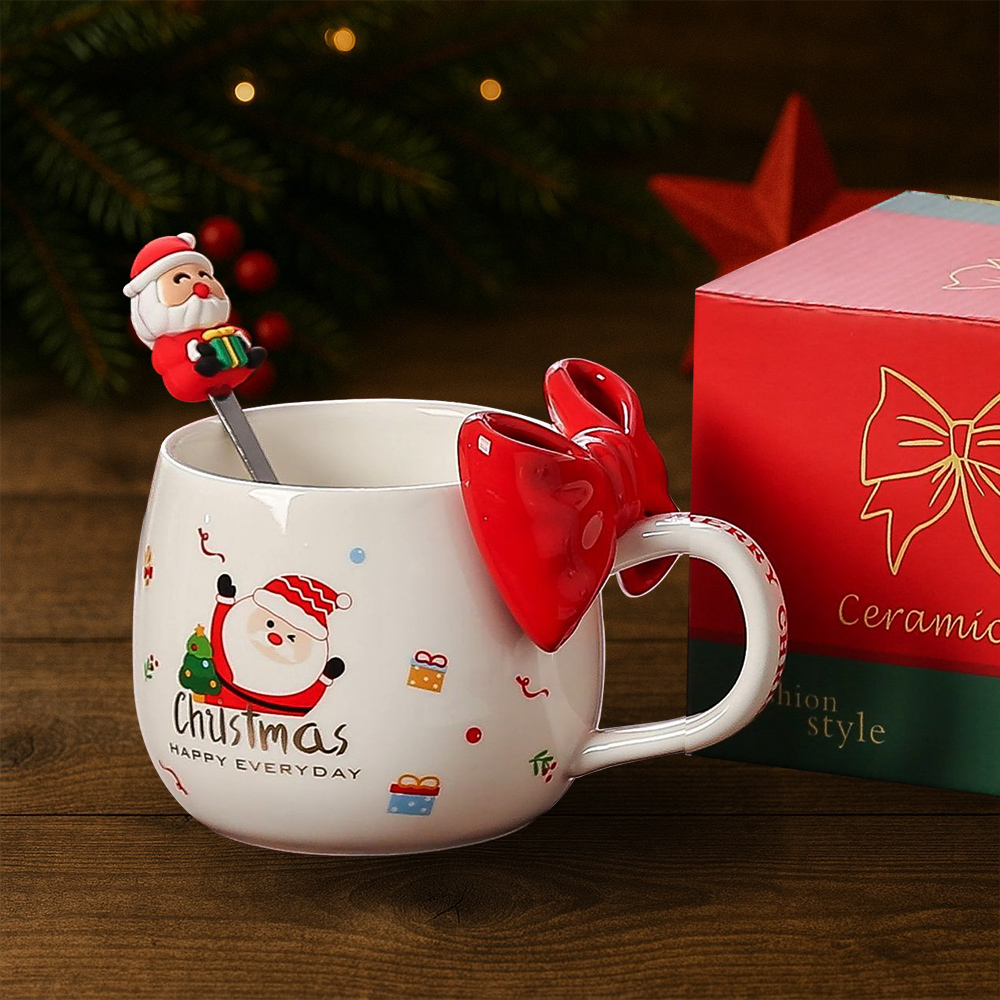 杯身印有可愛聖誕老人與禮物圖案,節慶氛圍滿分。