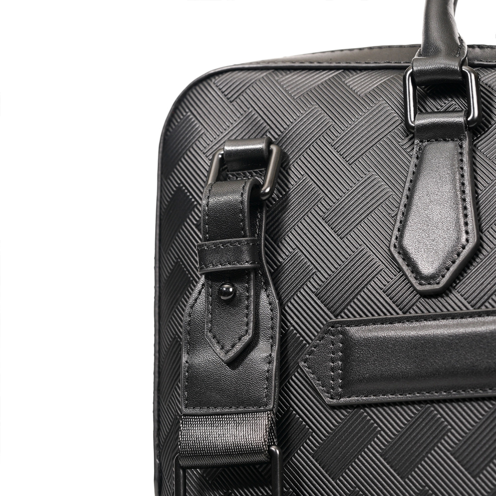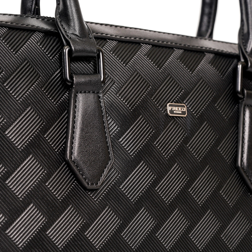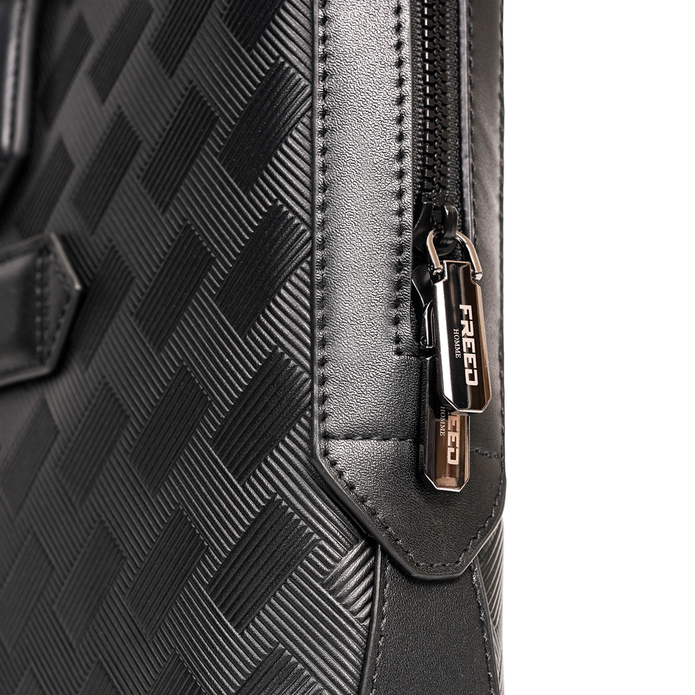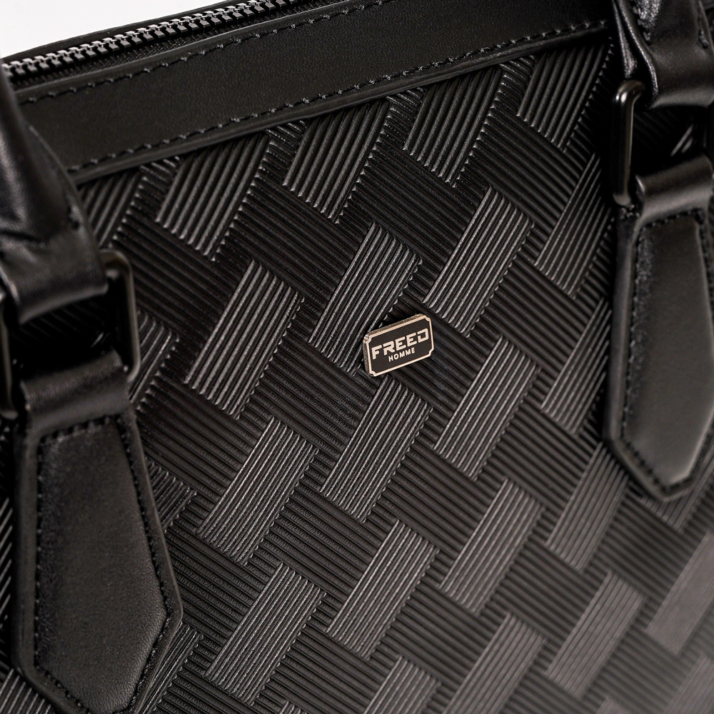 以俐落格紋展現都會紳士風範,FREED 編織壓花斜方格公事包以高級真皮打造結合立體壓紋與極簡金屬細節,在低調黑色中呈現專業氣度與質感層次。內部多層收納設計,兼顧工作與日常使用,無論手提或肩背,皆展現自信從容的品味態度。