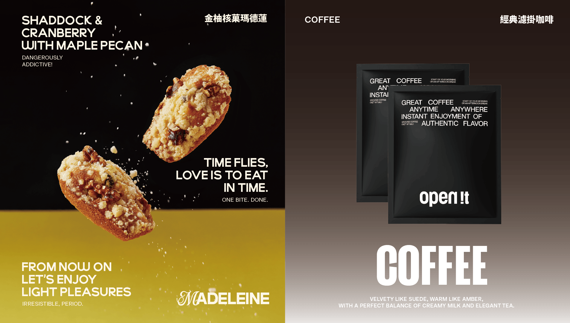 商品口味(綜合) |熔岩可可瑪德蓮x1、蜜蘋肉桂瑪德蓮x1、金柚核菓瑪德蓮x1、焦糖菓菓瑪德蓮x1、法式原味瑪德蓮x1、品牌濾掛咖啡x6