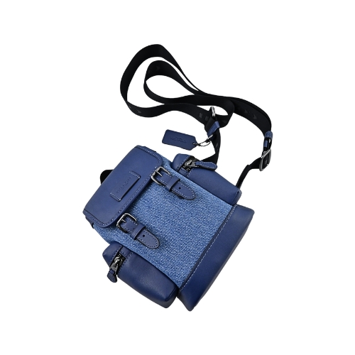 COACH新款迷你後背包,包款採便利金屬扣式翻蓋開合,兩側磁釦翻蓋收納空間,內置單格小開口袋,拉合式調整尼龍布質背帶、立體輕巧好收納。(圖片包包內iphone 6手機及卡片僅供包款收納空間參考用,不包含在商品內容)★尺寸:寬13CM、高19CM側邊底寬8CM,拉合式調整尼龍布質背帶★規格:金屬扣式翻蓋開合,內置單格小開口袋