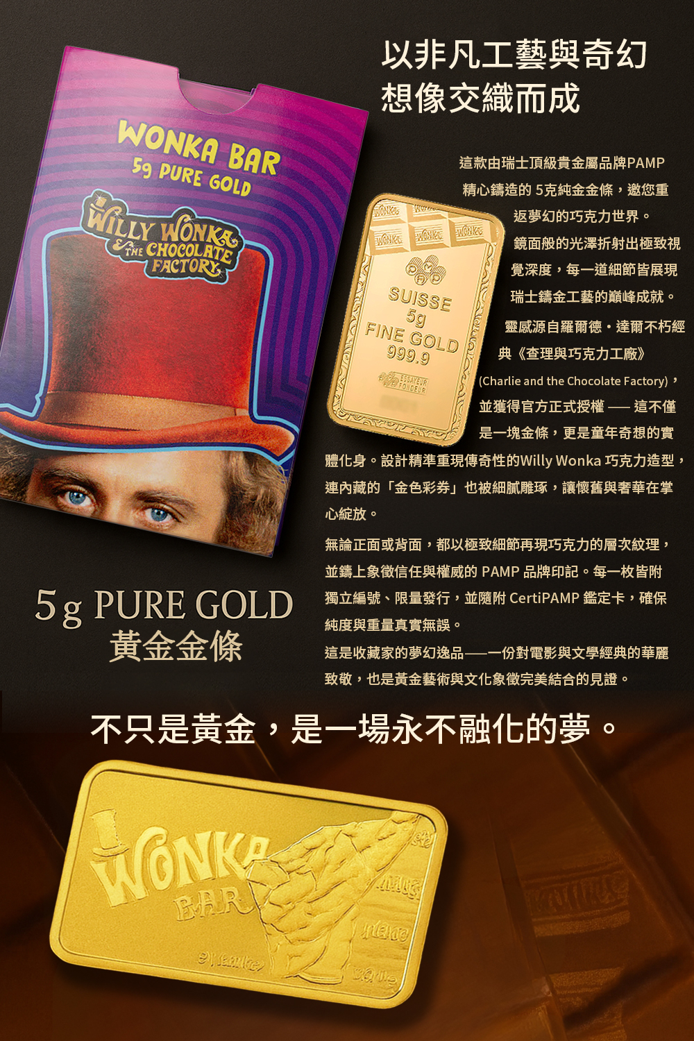 名稱:瑞士PAMP Willy Wonka巧克力限量版 5g黃金條塊 (國際LMBA認證)