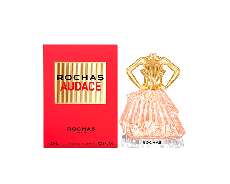 逆光女神淡香精的醒目的包裝以紅色為主調,喚起果敢與女性魅力,點綴金色細節,彰顯奢華格調。瓶蓋設計如緊身上衣,象徵一位準備贏得賽事的果敢女性,同時展現女性的感性與柔美。瓶身猶如一襲蜜桃色禮服,完美詮釋 ROCHAS 品牌的精緻美學。