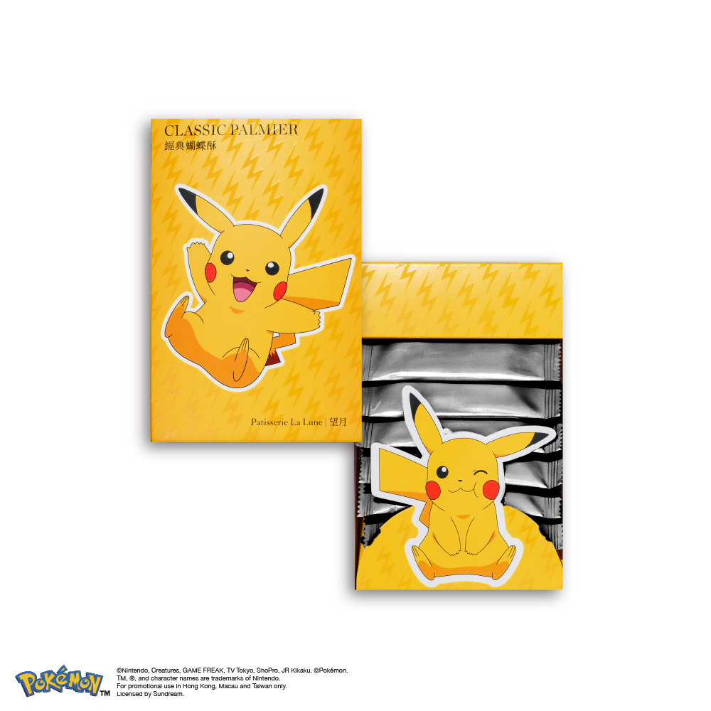 望⽉再次推出可愛指數爆表的經典蝴蝶酥 - Pokémon特別版(6件)小禮盒,鮮黃色皮卡丘禮盒與金黃色的望月經典蝴蝶酥相映成趣,可愛魅力風靡大小朋友!