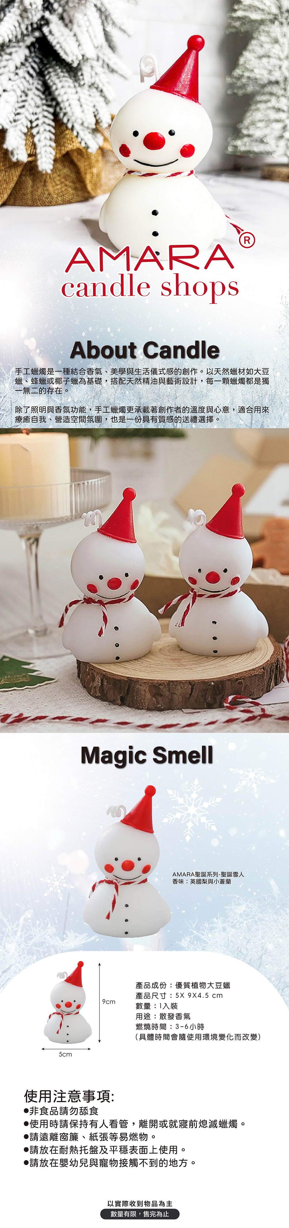 AMARA 香氛蠟燭 聖誕系列蠟燭-聖誕雪人 儀式感生活 生日禮物 情人節禮物 交換禮物 聖誕禮物