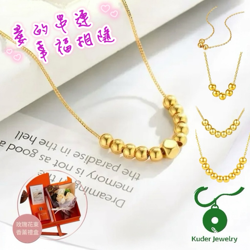 [快速出貨]【Kuder Jewelry】黃金上身富貴加分~1+1愛的串連項鍊『LINE禮物獨家組合』買黃金項鍊送玫瑰花朵香氛禮盒一件