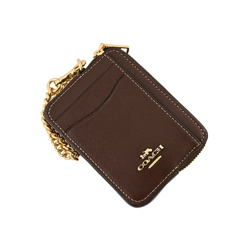 COACH多功能零錢包全皮新色款,方型拉鍊開合便於收納及拿取,外部正面設置三格卡片夾、背面一透明證件夾,可收納悠遊卡、公司磁卡等常用卡片,側邊金屬鍊帶可手掛或繫掛於包包上,實用便攜。★尺寸:直量寬8CM高10.5CM側邊寬2CM,金屬鍊帶長約10CM★規格:拉鍊開合,內無夾層,外部側邊設置一金屬鍊掛帶,正面3格卡片夾、背面一透明證件夾