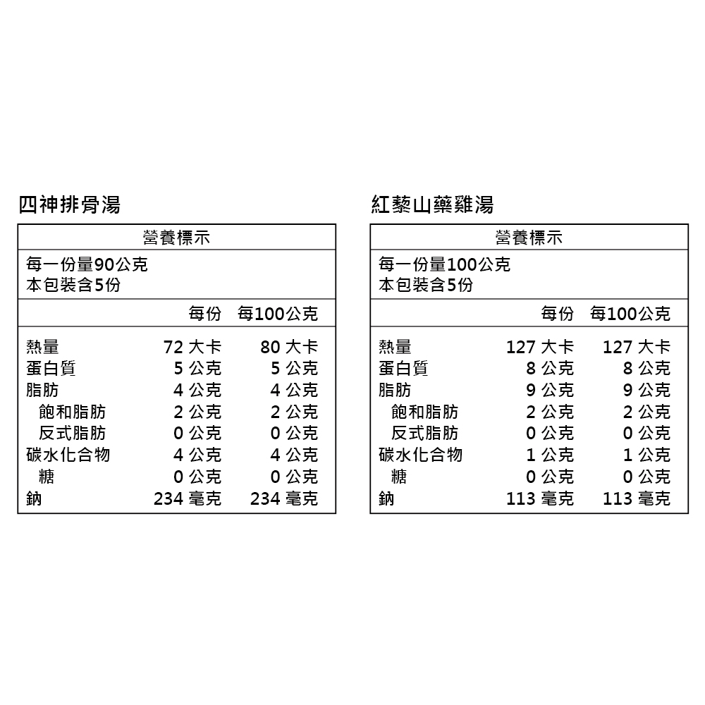 商品規格品名:【NPO channel】集食送愛《為獨老奉上暖暖心意》湯品聯合募集 (購買者不會收到商品)重量/容量: 認購,每份2道湯品。(口味隨機出貨)紅藜山藥雞湯:500公克(含固形物150公克)四神排骨湯:450公克(含固形物100公克)內容物: 四神排骨湯:水、排骨(台灣)、山藥、高湯(麥芽糊精、食鹽、蔗糖、酵母抽出物、水解植物蛋白粉、香菇抽出物、高麗菜抽出物)、薏仁、蓮子、茯苓、淮山、芡實。紅藜山藥雞湯:水、雞肉、山藥、高湯(麥芽糊精、食鹽、蔗糖、酵母抽出物、水解植物蛋白粉、香菇抽出物、高麗菜抽出物)、薑、枸杞、馬告、紅藜。產地: 台灣有效期限: 一年保存方式: 常溫