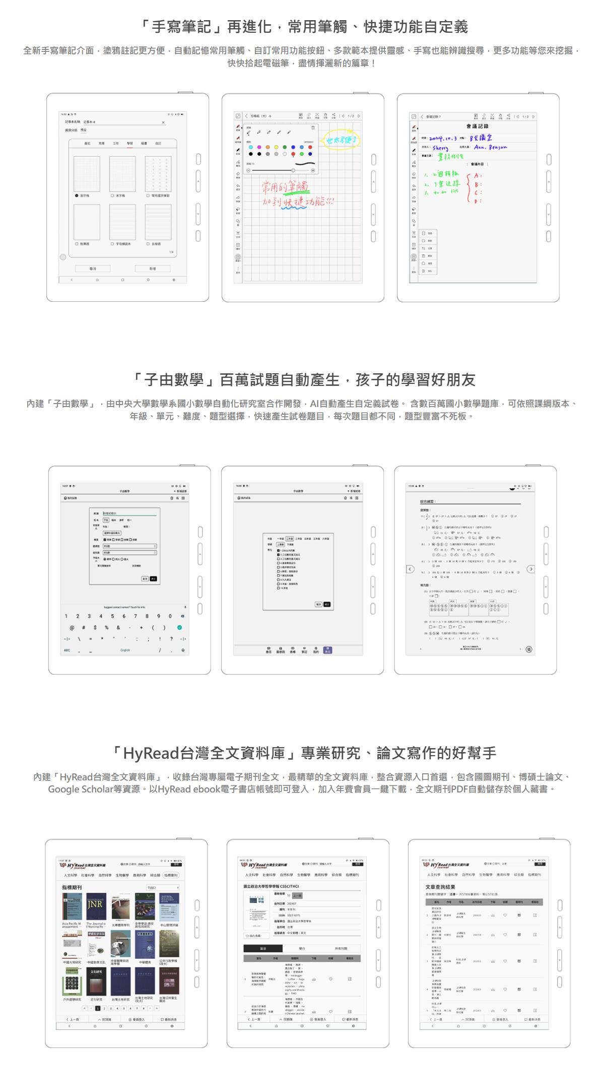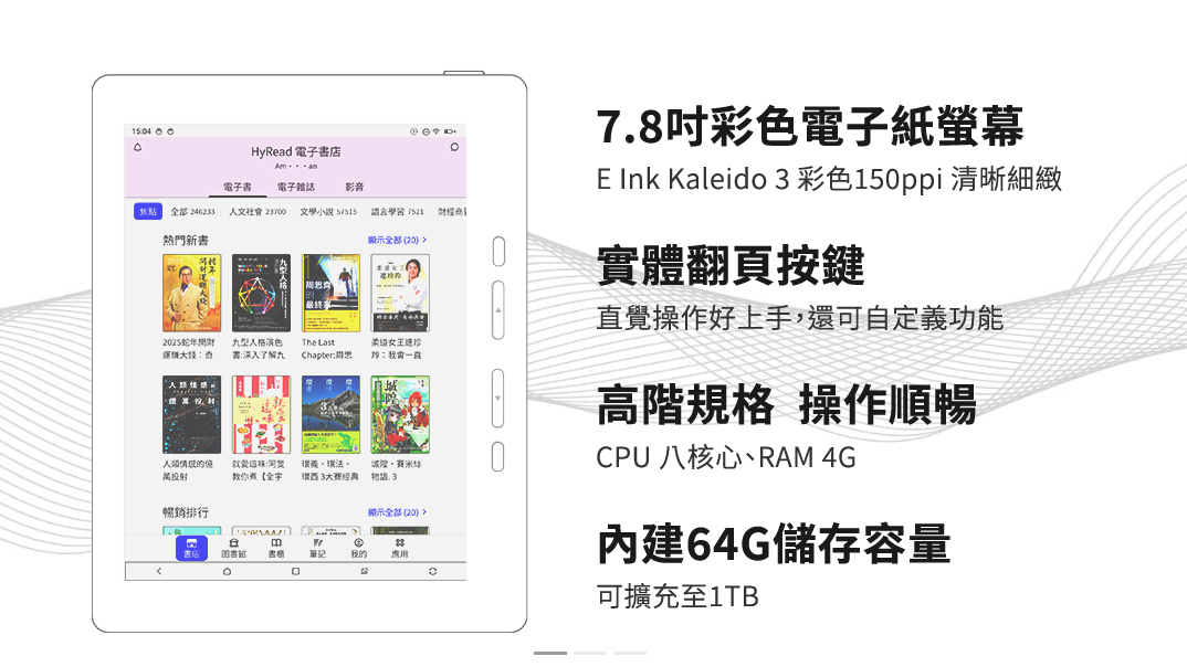 螢幕特性:電子紙閱讀器採E Ink電子紙顯示器,如紙般輕薄,由塑膠薄膜及薄玻璃製成,與生活中使用的LCD螢幕完全不同,無法承受外力撞擊、摔落、單點施壓、物品重壓等,皆可能造成螢幕損壞,請您使用上務必留意。