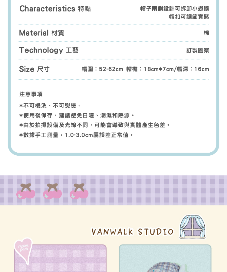 帽檐尺寸:寬 18.5 cm / 長 7 cm