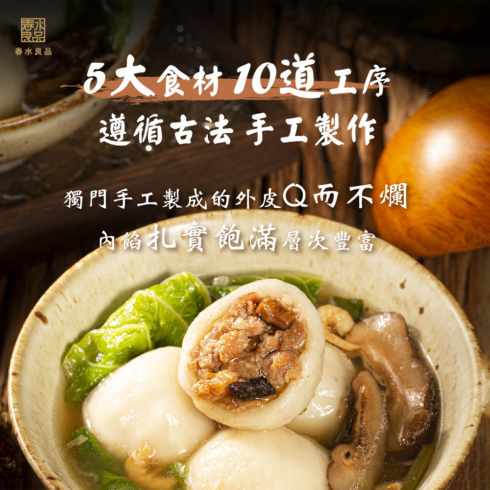 【商品介紹】春水堂功夫湯圓,冬日暖心鹹食!春水堂功夫肉燥風味與古早味鹹湯圓的結合,外皮軟糯Q彈,內餡鹹香多汁、口感豐富。嚴選台灣豬後腿肉,使用台灣原產米、香菇、蝦米與紅蔥頭,拌炒出層層香氣。兩倍大份量,飽足又滿足,是冬天最對味又飽足的暖心選擇。