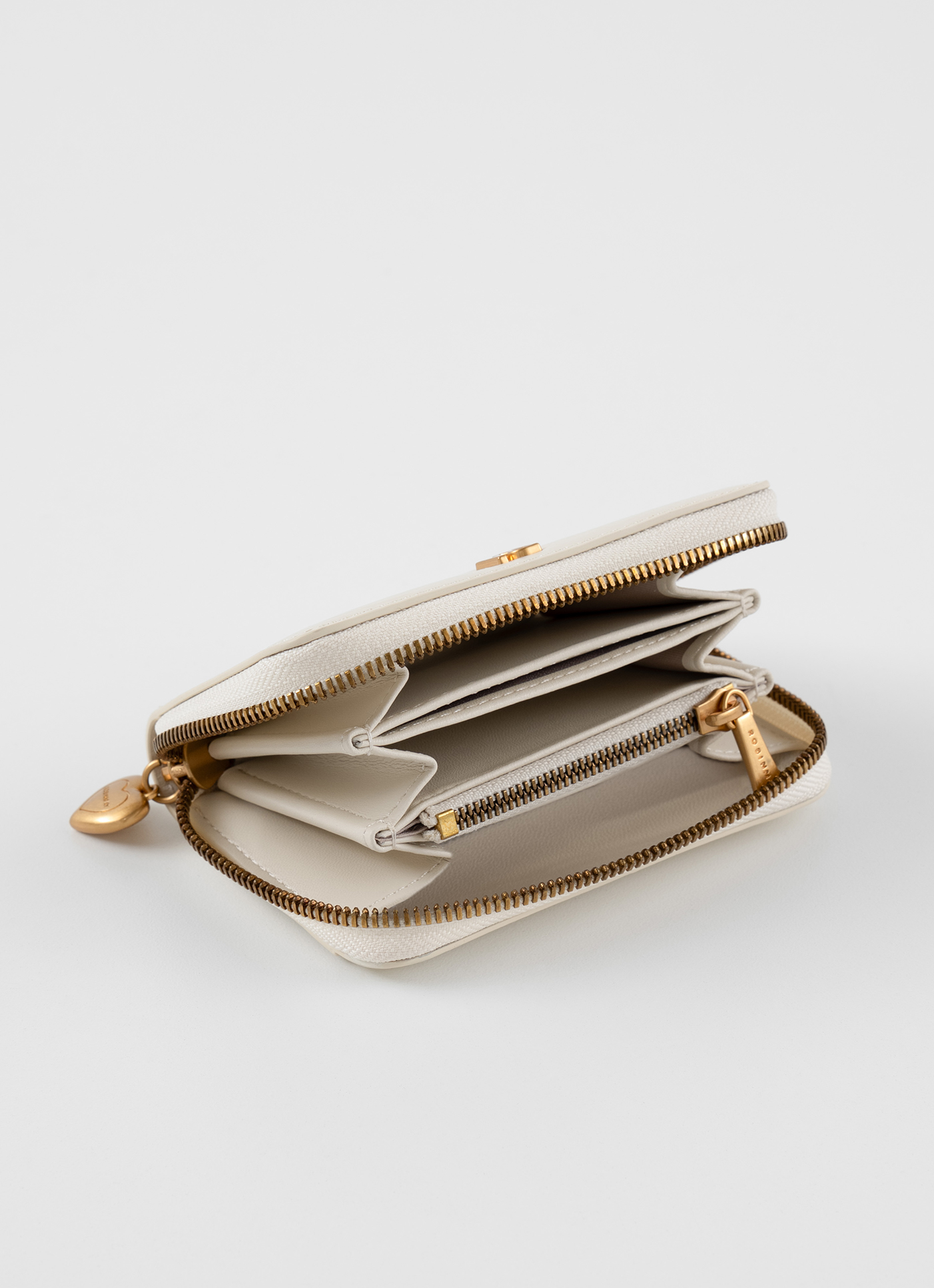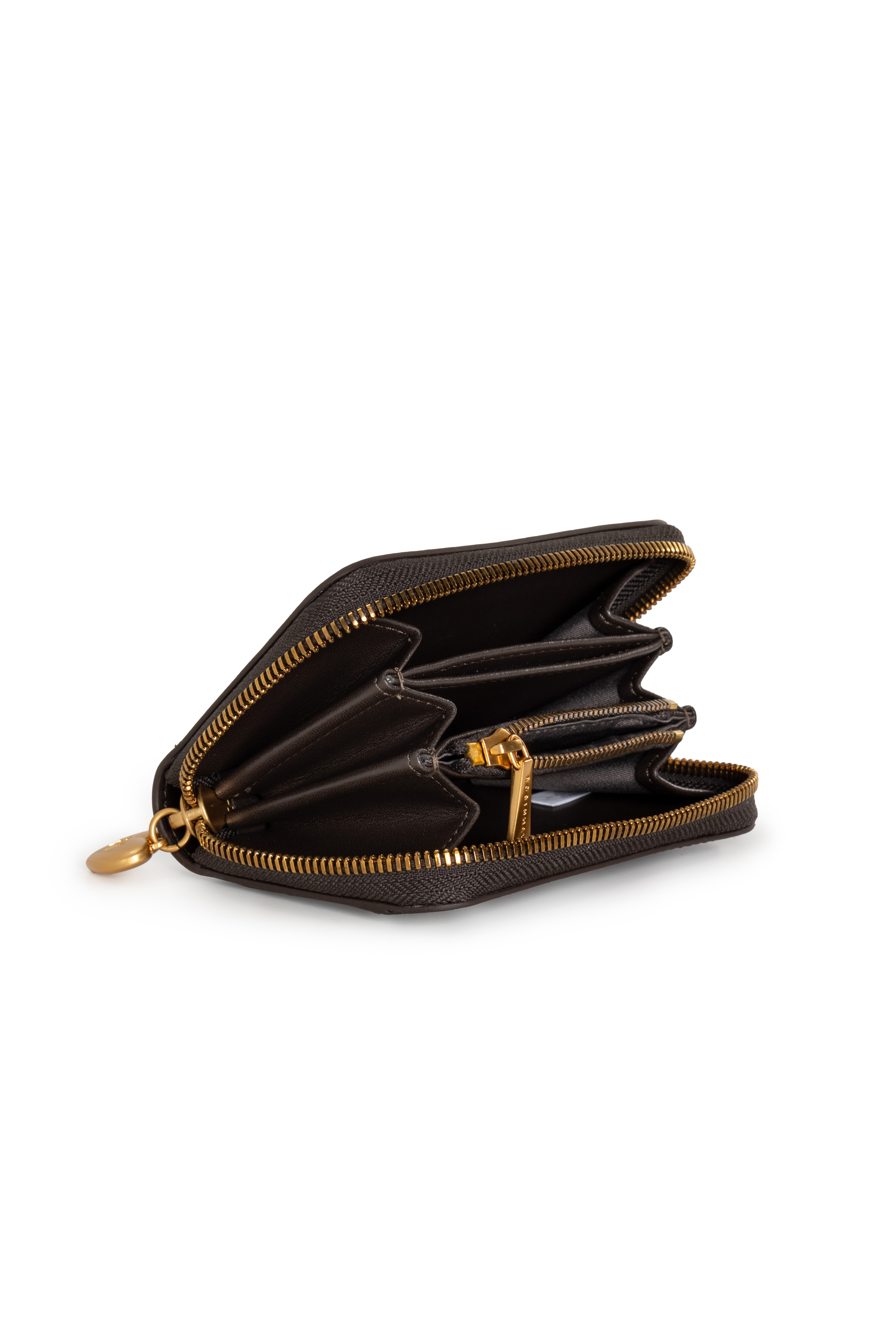 經典方塊短夾設計,適合日常使用RM 質感字母 LOGO 點綴、愛心金屬拉鏈頭基本收納空間,票卡零錢時穩妥收納手感輕盈,尺寸適中,可置入隨身包包內
