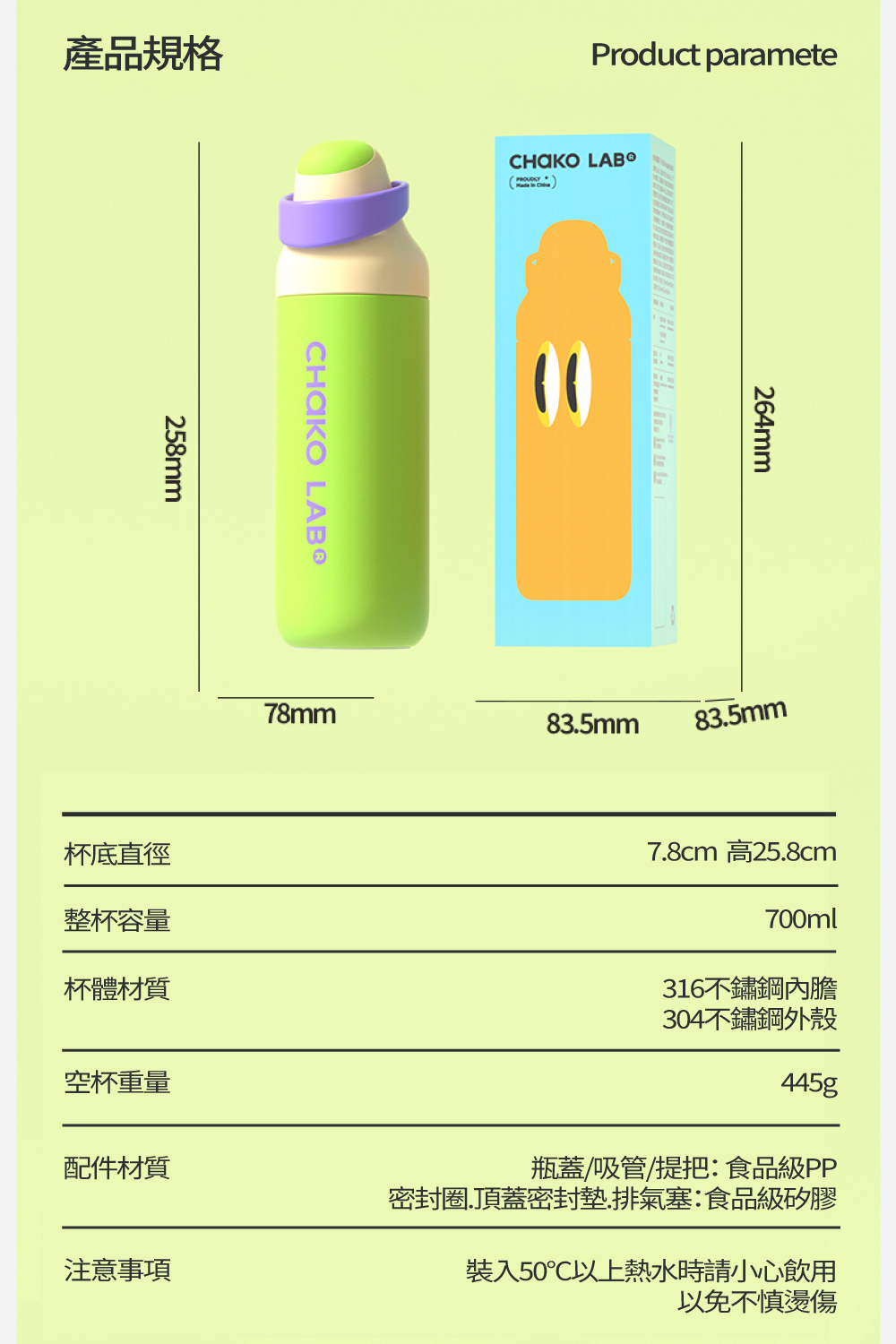 【CHAKO LAB】700ml不鏽鋼保溫咔噠杯,輕巧易攜,保溫效果卓越。健身、出遊、休閒,咔噠鎖扣一秒即可變身為提把,方便攜帶,獨創直飲/吸管杯雙飲設計,大口補水或小口啜飲自由切換。