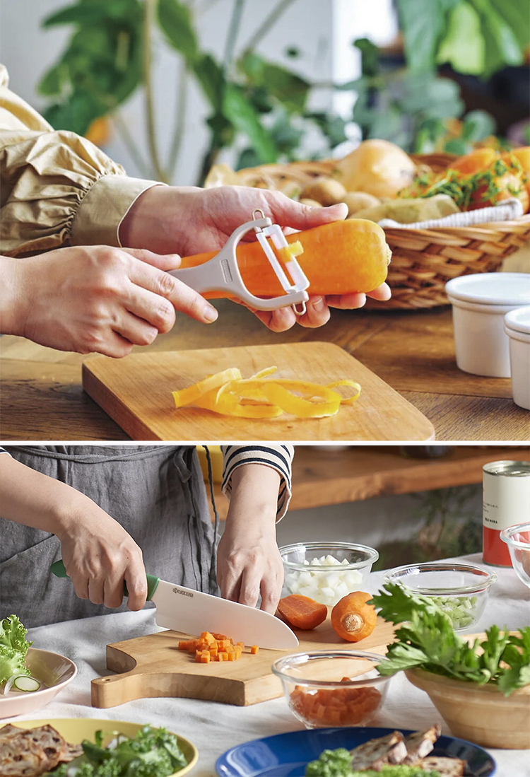 產地:刀柄/中國廠製 日本監製(刀刃/日本製)削皮器/中國廠製 日本監製(刀刃/日本製)砧板/日本製 Made In Japan