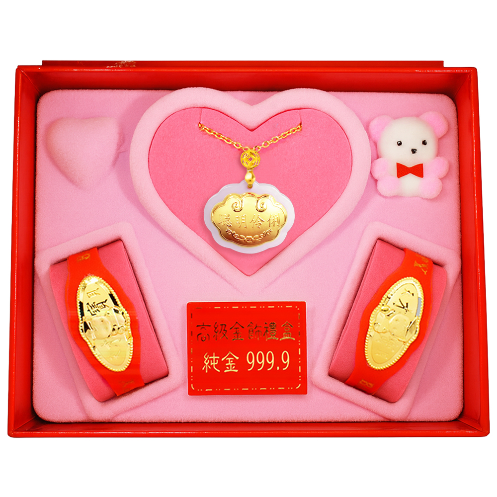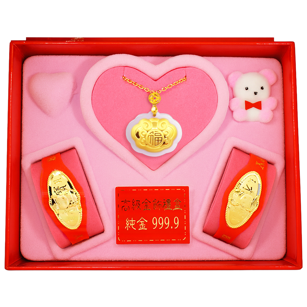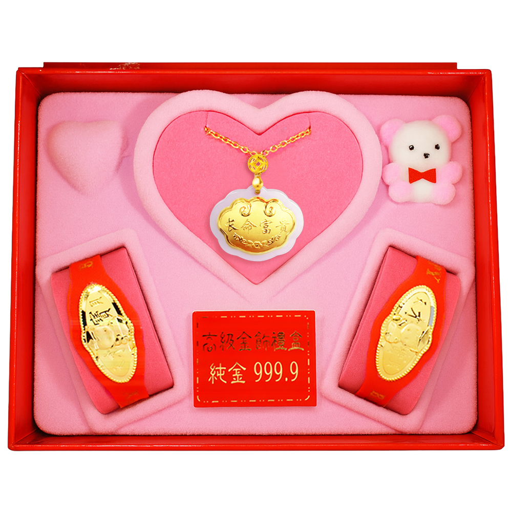 名稱:金枝玉葉彌月套組 四款任選 重0.1錢 (彌月金飾 彌月禮)材質:純金999金重:黃金約重0.1錢配備:包裝盒x1、保證卡x1、手提袋x1
