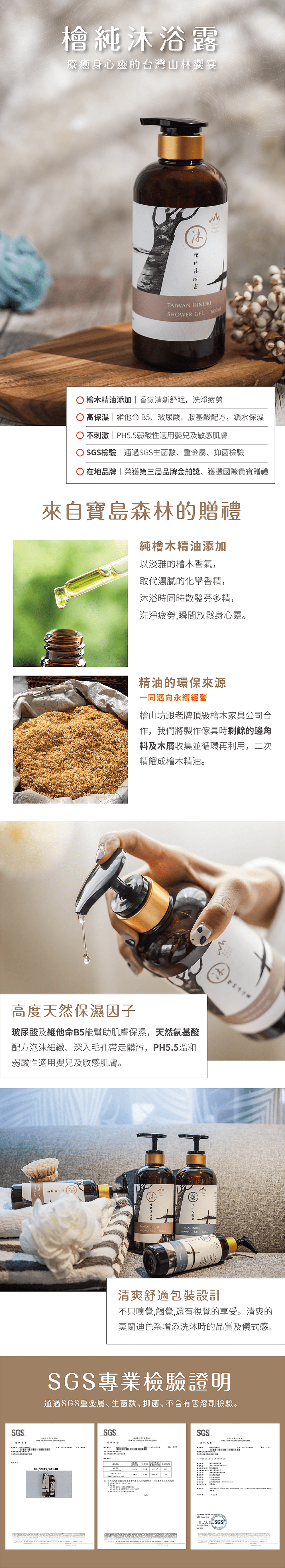 檜純沐浴露,添加純天然檜木精油,不含化學香精,享受放鬆森林浴