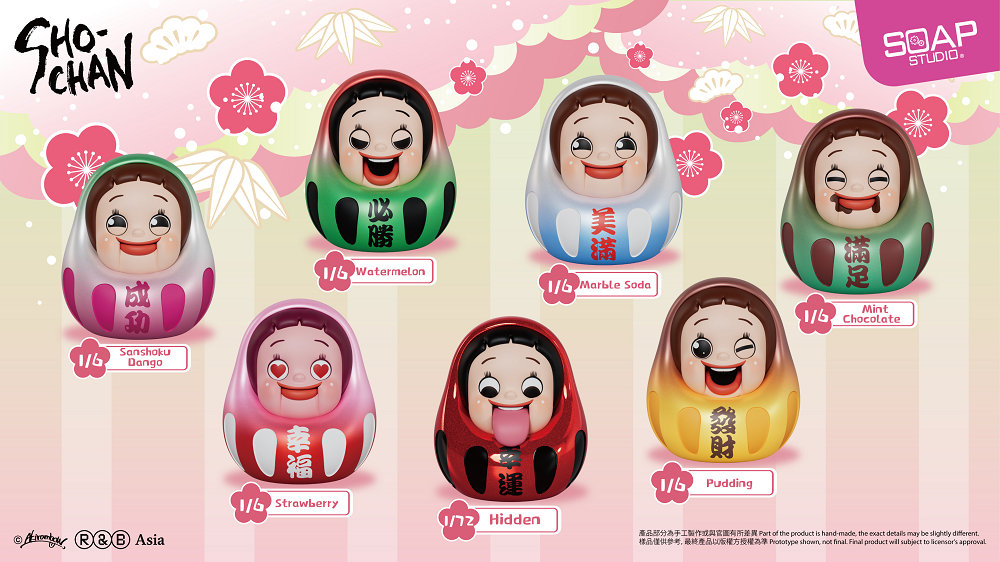超人氣的燦子,這次變身成討喜又療癒的達摩造型,每1款都擁有專屬的幸福祈願,搭配粉嫩繽紛的配色,萌度滿點,帶來滿滿好運