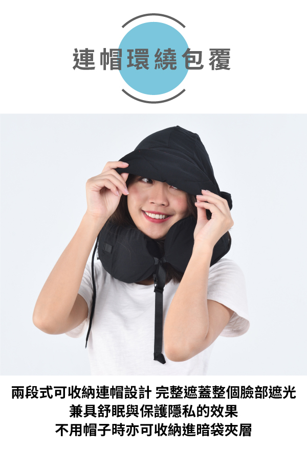 ◆ 獨特枕型結構 強化頸部支撐◆ 按壓充氣幫浦 便利衛生摺疊好收納◆ 採用天絲莫代爾親膚材質枕套◆ 兩段式連帽設計 遮蓋臉部減少干擾◆ 枕套收納口袋設計 收納眼鏡耳機等小物