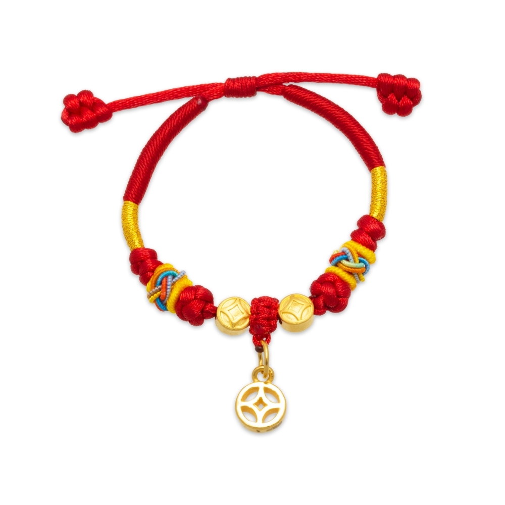 材質:純金+紅繩金重:黃金約重0.13錢±0.03尺寸:手繩周長約13cm,大小可自由調節配件:包裝盒x1、保證卡x1、手提袋x1