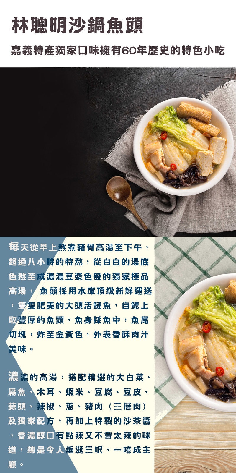 1.商品組合/規格:【嘉義林聰明】沙鍋菜(1000g) x2包2.商品品名:【嘉義林聰明】沙鍋菜(1000g)3.商品重(容)量:1000g/包4.內容物成分:豚骨高湯(水、豚骨(台灣))、大白菜、豆腐(非基改黃豆、水、碳酸鈣、氯化鎂)、沙茶醬(黃豆油、糙米皮、扁魚、紅蔥頭、糖、食鹽、辣椒粉、薑黃粉、辣椒紅、烏胡椒、花椒、桂通、大茴、L-麩酸鈉、琥珀酸二鈉、-次黃嘌呤核苷磷酸二鈉、–鳥嘌呤核苷磷酸二鈉) 豆皮(非基改黃豆、大豆沙拉油、脂肪酸甘油脂、碳酸鈣、大豆卵磷脂、矽樹脂)、豬肉片(台灣)、黑木耳、蔥、蒜、辣椒※本產品含有魚、黃豆、堅果、蝦,食物過敏者請留意。5.原產地(國):台灣6.製造廠商或國內負責廠商名稱:鉅玄有限公司7.製造廠商或國內負責廠商地址:新北市汐止區福德二路123號6樓8.製造廠商或國內負責廠商電話:(02)2778-80919.保存期限:冷凍 30天(實際依包裝顯示)10.食品業者登錄字號:A-182910908-00000-511.投保產品責任險字號:富邦產險0523字第20AML0000231號