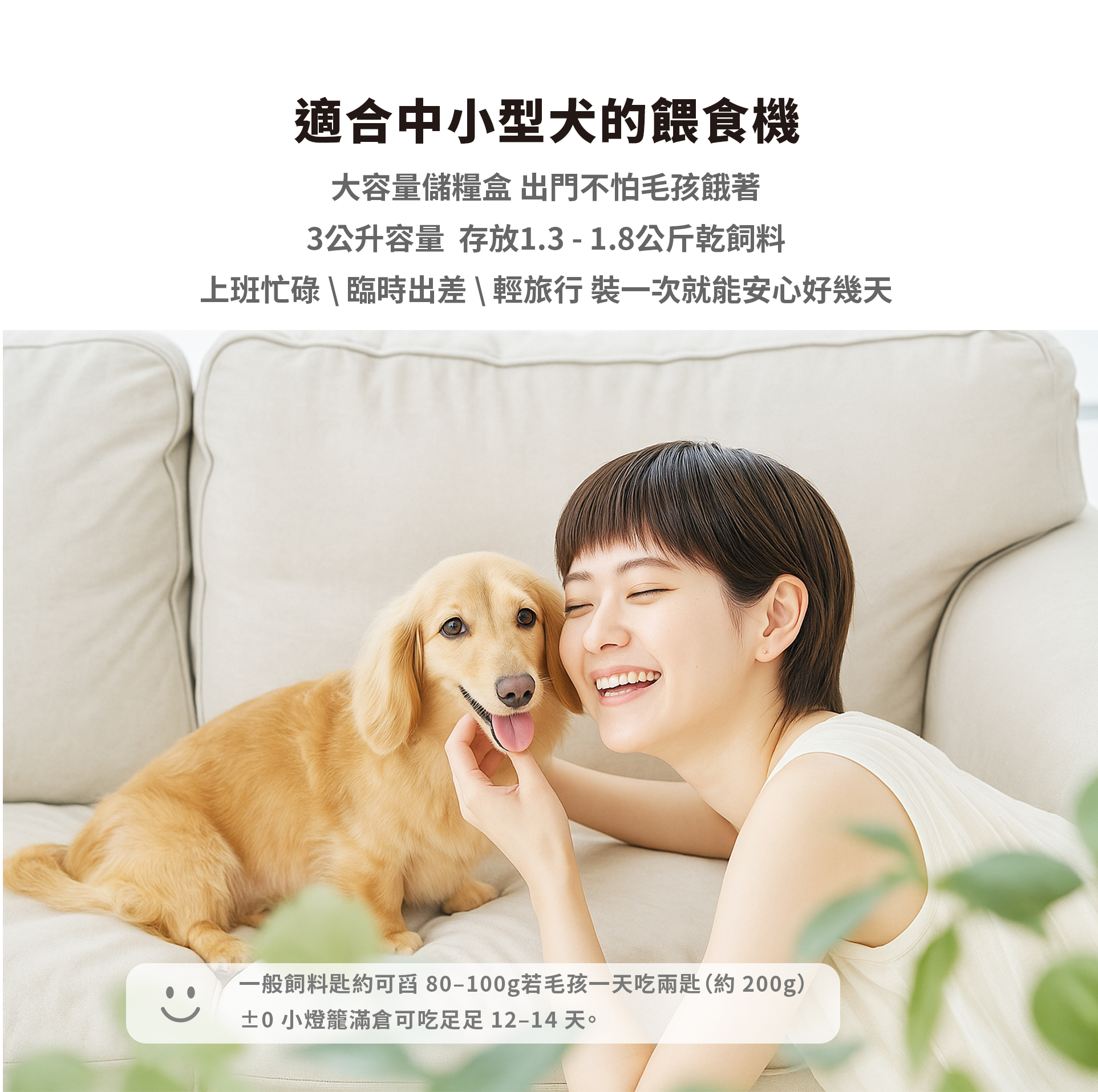 3公升大容量儲糧盒,適合中小型犬,出遠門不怕毛孩餓著。