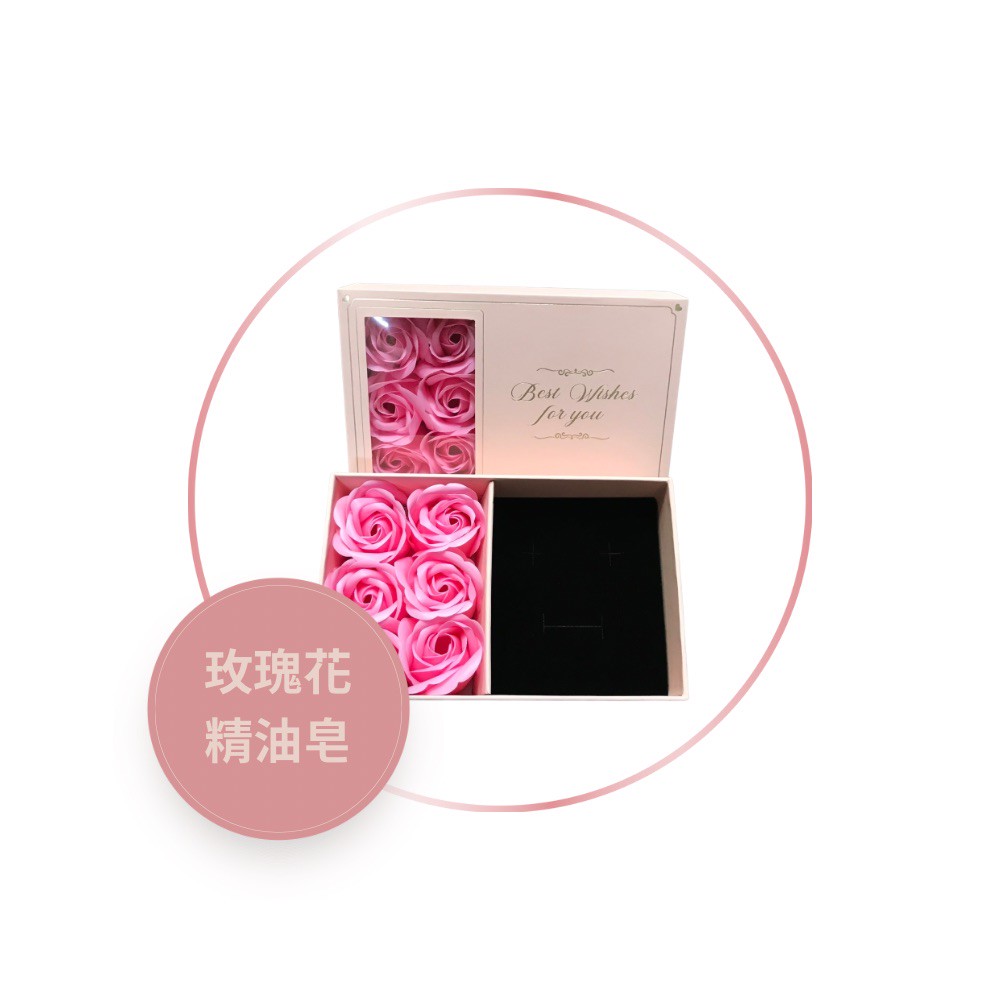 藍色六朵玫瑰精油皂禮盒,或粉色六朵玫瑰精油皂禮盒提袋.黃金保證書.