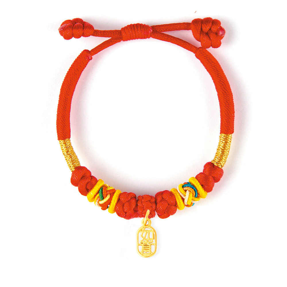 材質:純金+紅繩金重:黃金約重0.23錢±0.03尺寸:手繩周長約13cm,大小可自由調節配件:包裝盒x1、保證卡x1、手提袋x1