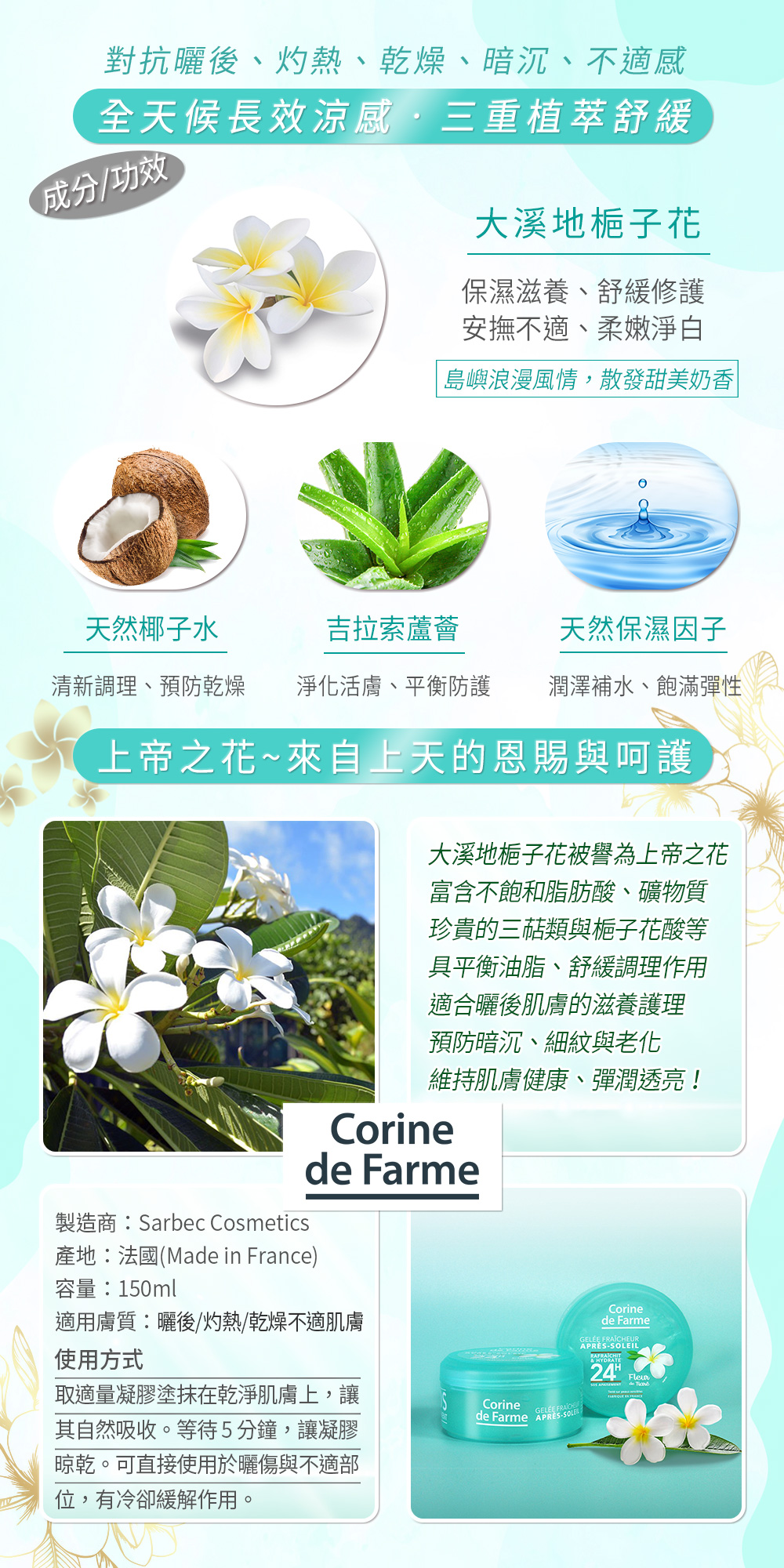 █ 結合具補水解荒的椰子、蘆薈與舒緩柔軟的大溪地梔子花。