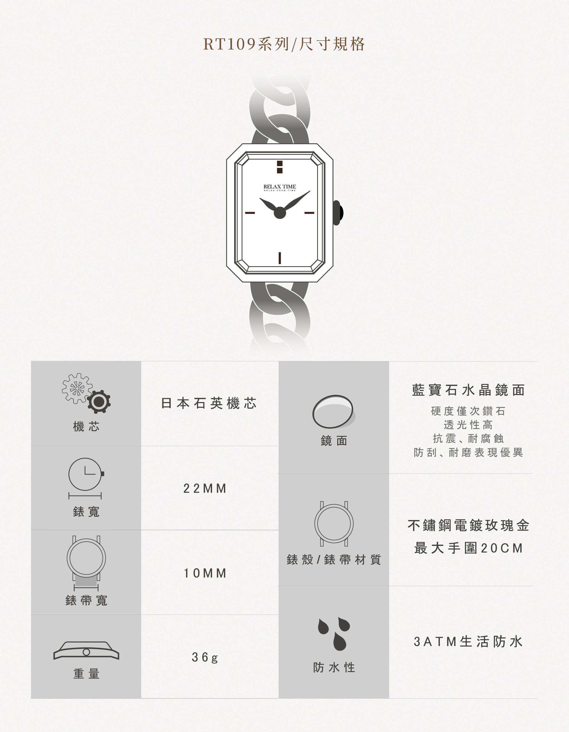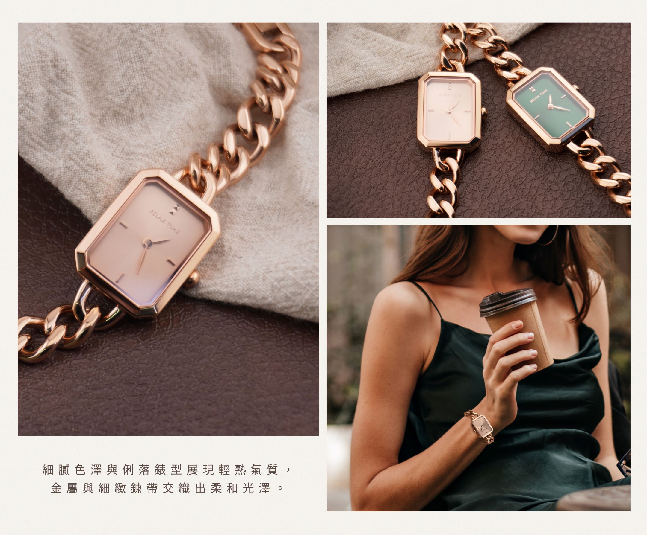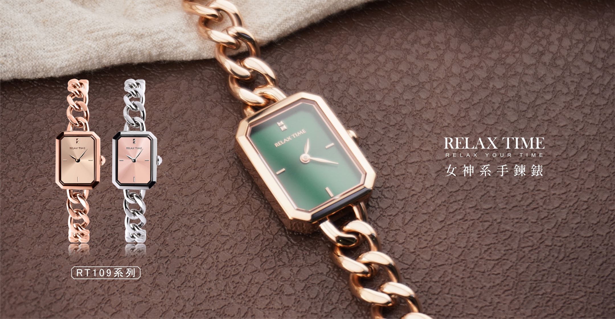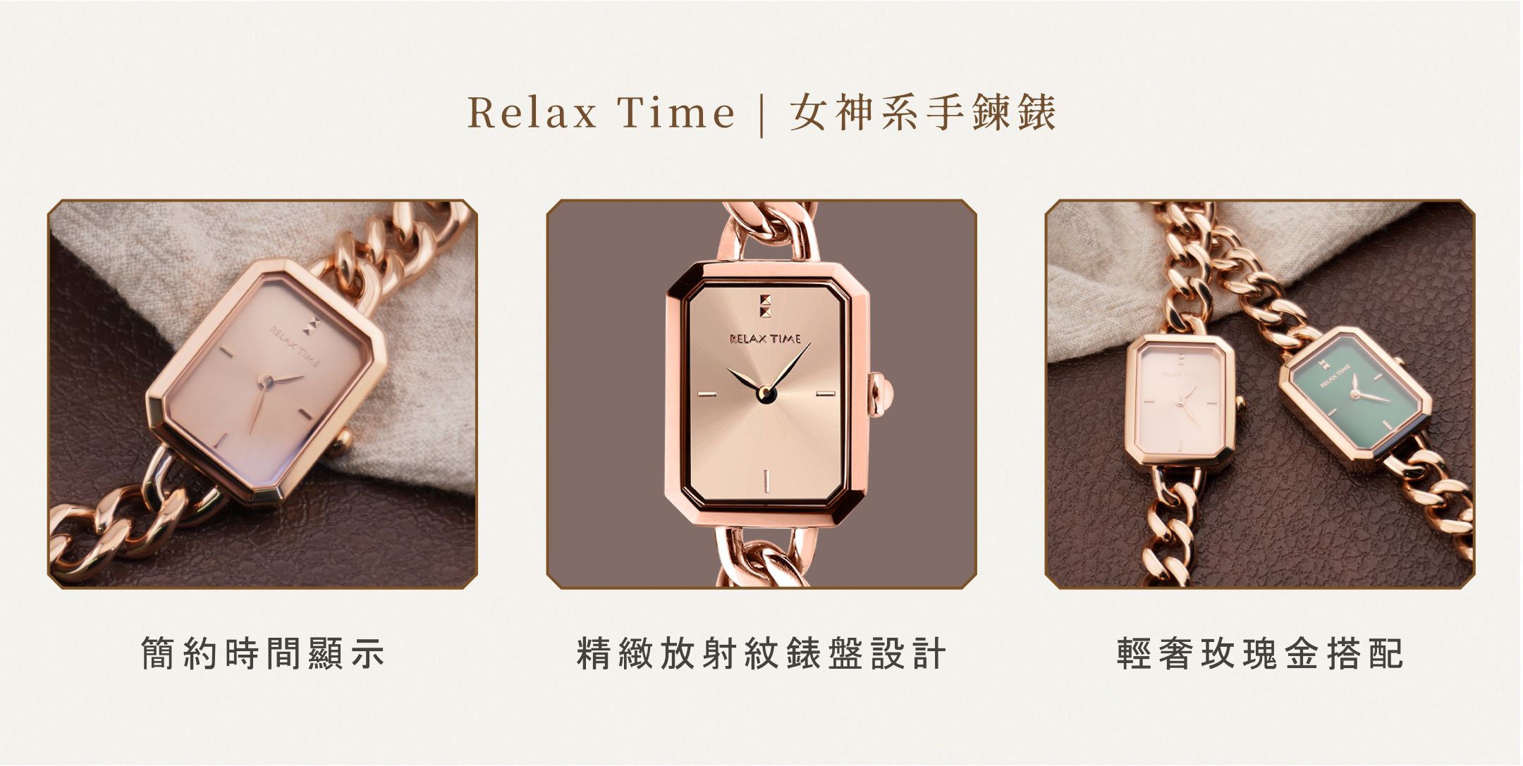 RELAX TIME 長方手鍊風格女錶 玫瑰金 (RT-109-2-07)