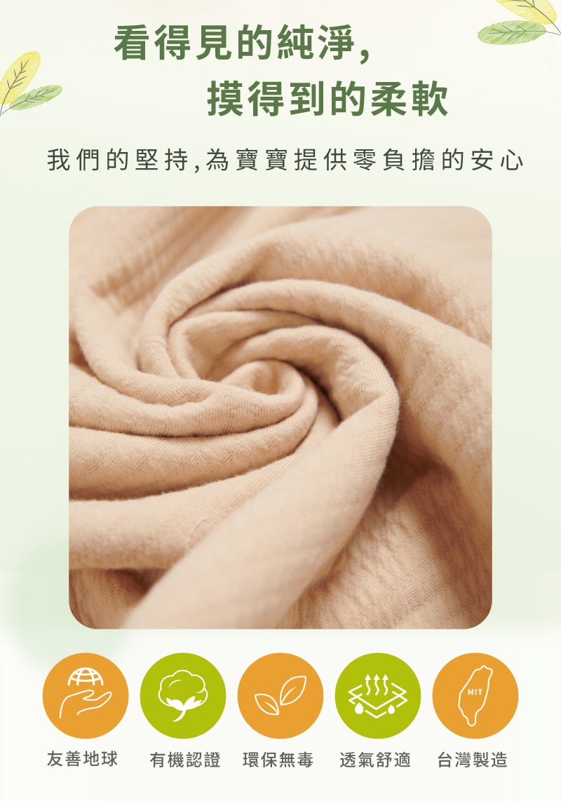 有機安心 親膚首選 純淨呵護✅ 100%有機安心不含農藥、不經化學處理,全程通過ECOCERT有機認證,守護寶寶肌膚,也守護地球環境。