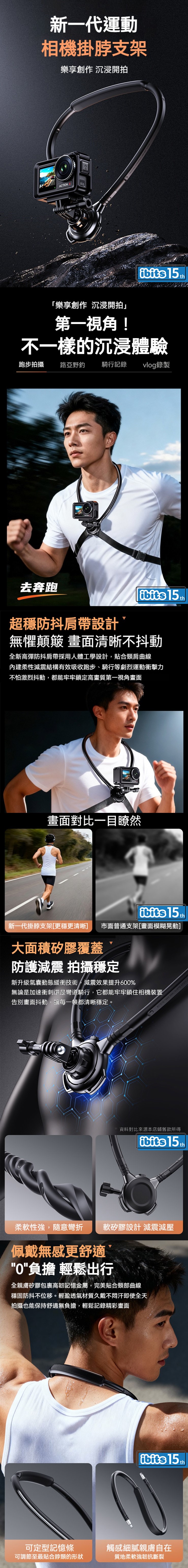 超穩防抖肩帶設計 無懼顛簸 畫面清晰不抖動全新高彈防抖肩帶採用人體工學設計,貼合頸肩曲線,內建柔性減震結構有效吸收跑步、騎行等劇烈運動衝擊力,不怕激烈抖動,都能牢牢鎖定高畫質第一視角畫面