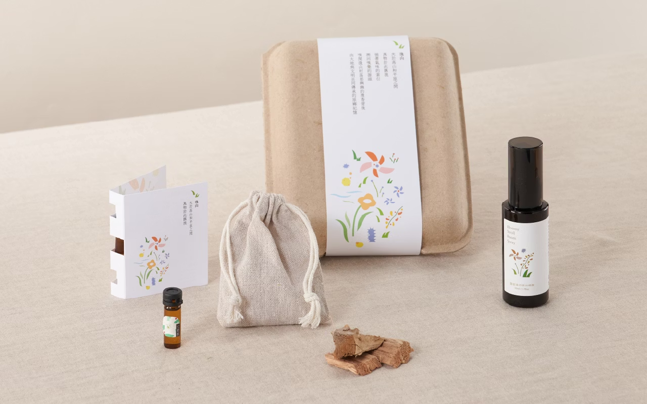 淺山漫香系列挑選臺灣低海拔常見六種花為主調,佐以濃郁的綠葉植被與少許木香。比起艷麗的人工花園,我們更專注描繪花朵在自然綠意中,隨微風輕輕搖曳、享受陽光烘照的慵懶自在。讓七里香、山棕花、白楸花、含笑花、相思花、野薑花用樸實親切的姿態,瀰漫在生活的每一個角落。