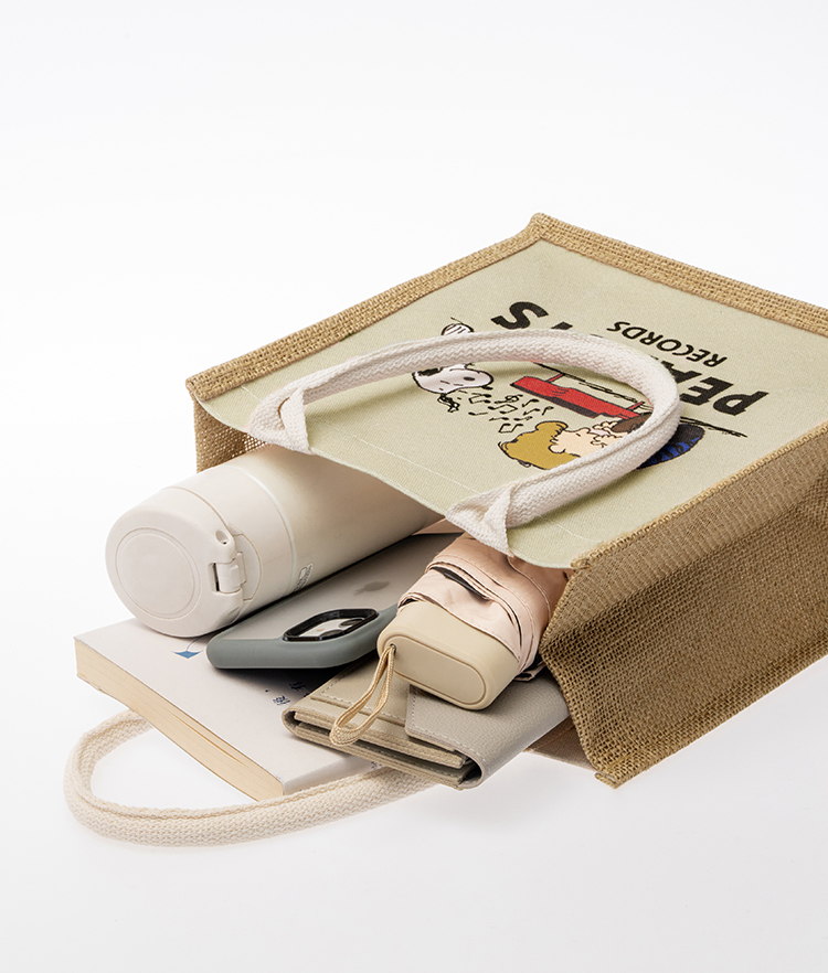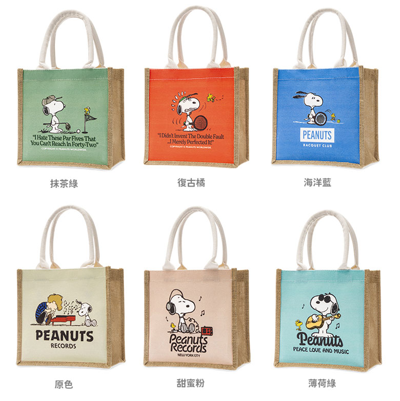 SNOOPY正版授權內層防潑水層雙面設計百搭實用可裝A5書籍、便當盒、500ml水壺!輕便外出萬用袋-中國黃麻、棉、聚酯纖維140克提把17cm長24*寬13.5*高24cm
